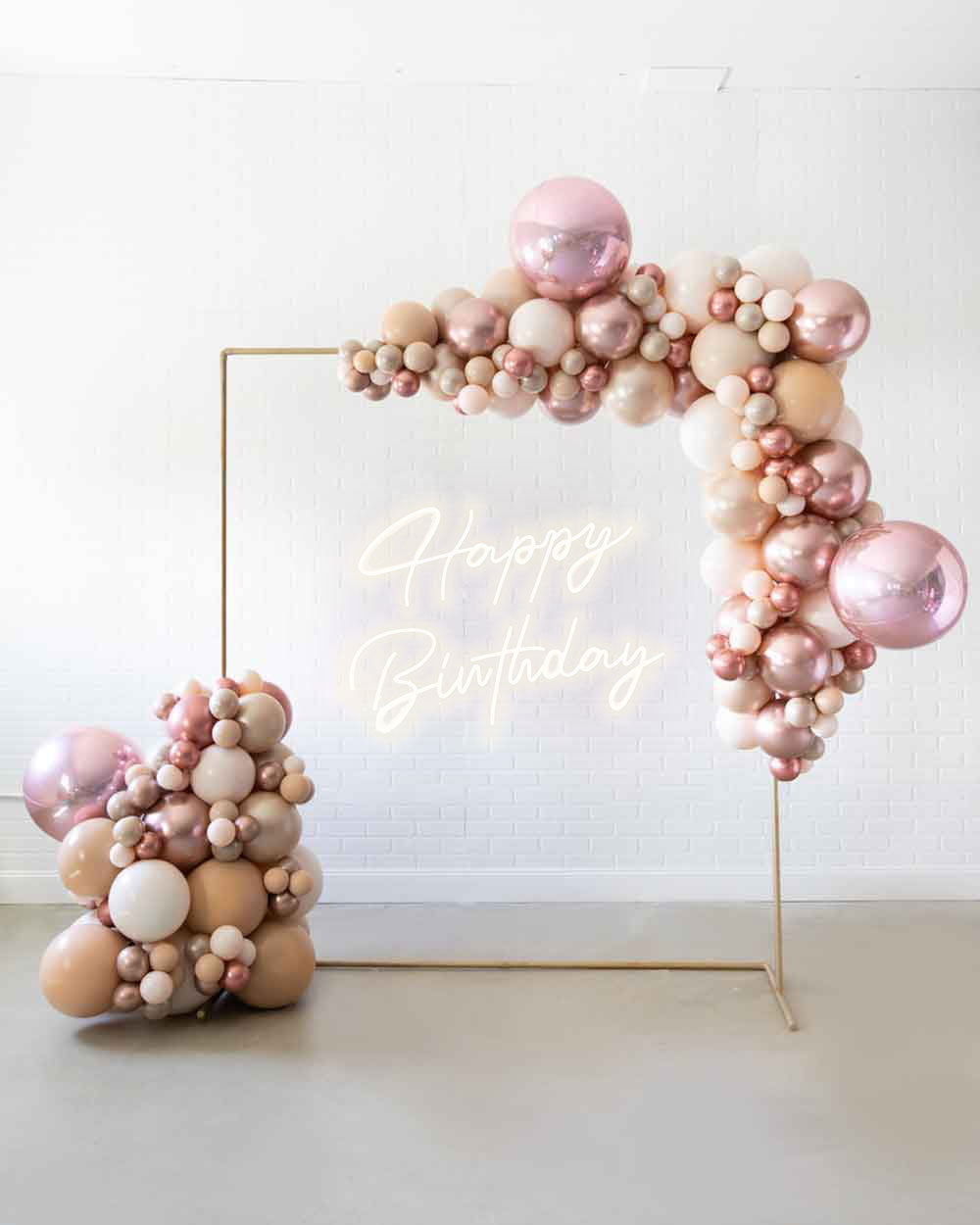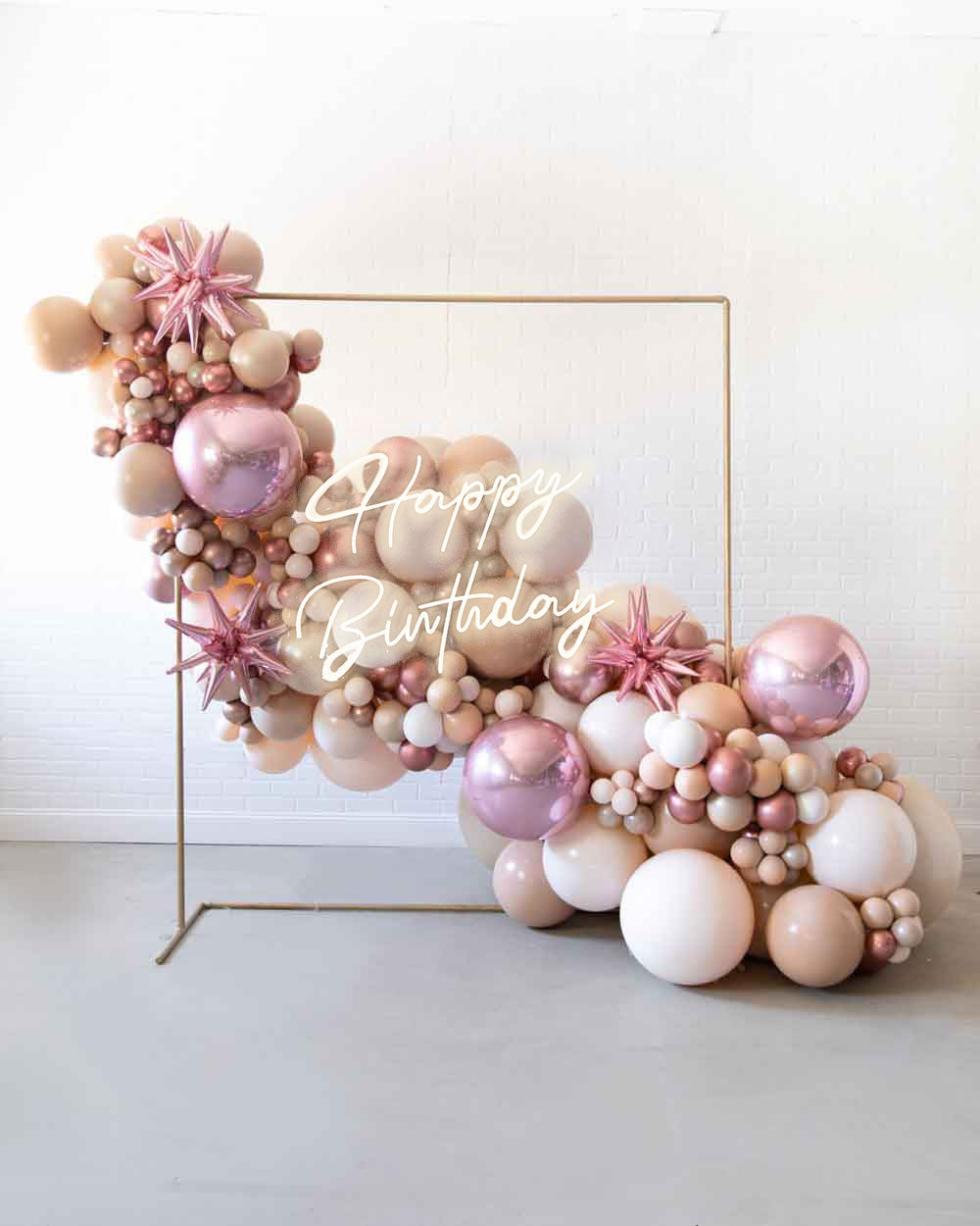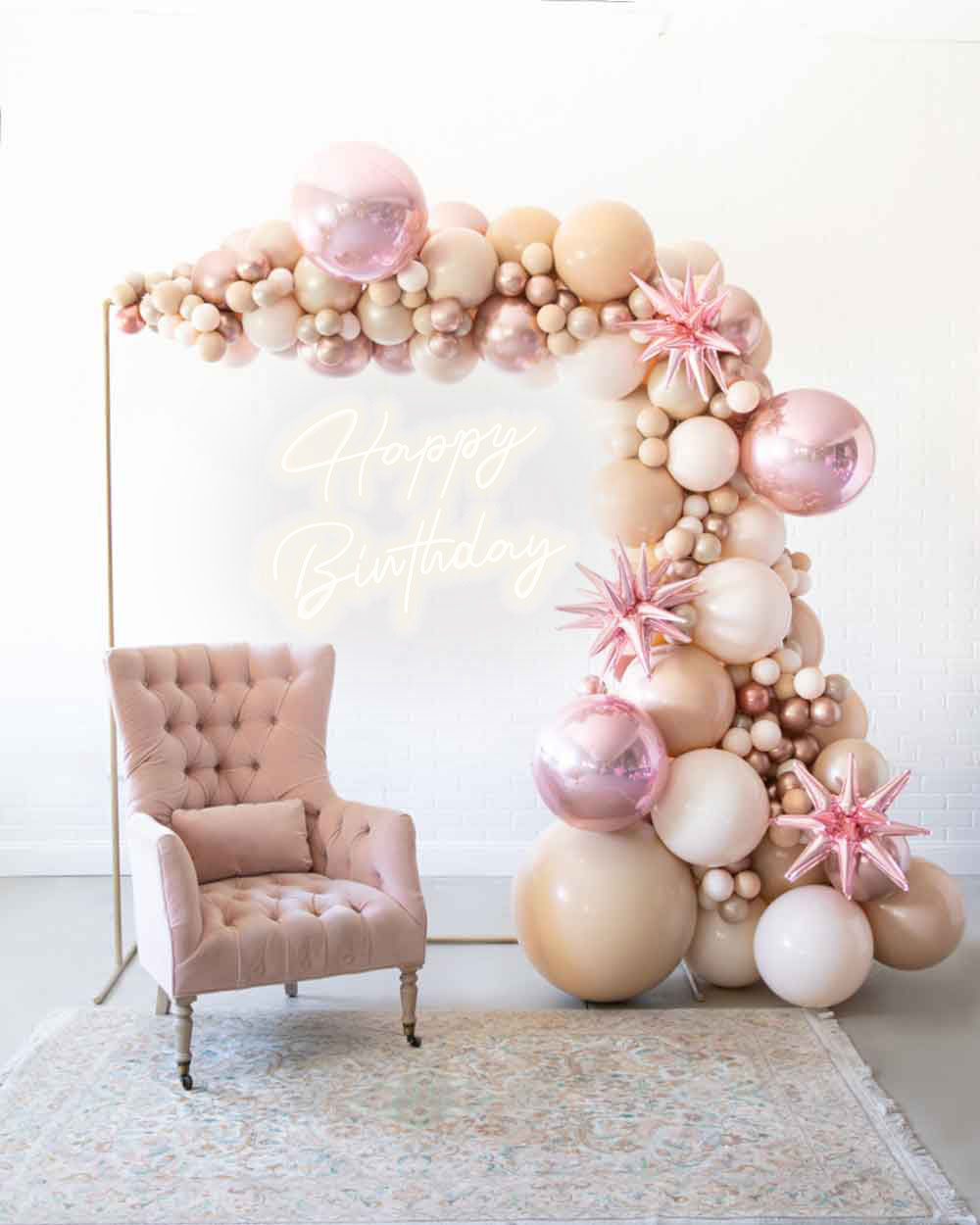 Light up your event with the ultimate backdrop! This balloon garland design includes balloons along a circular frame, as well as a beautiful neon sign to highlight your occasion in style! This works perfectly in any space and will wow your guests!