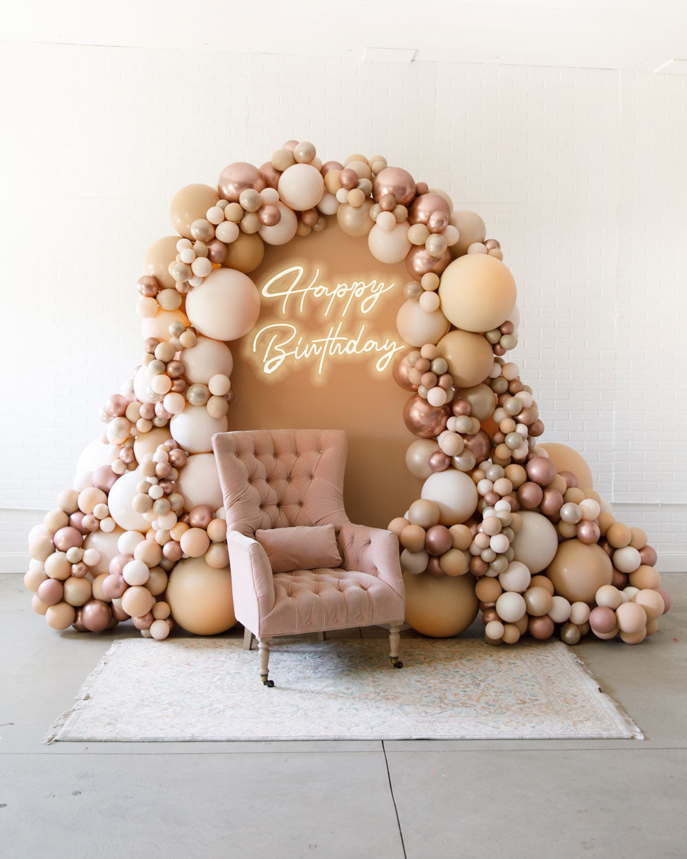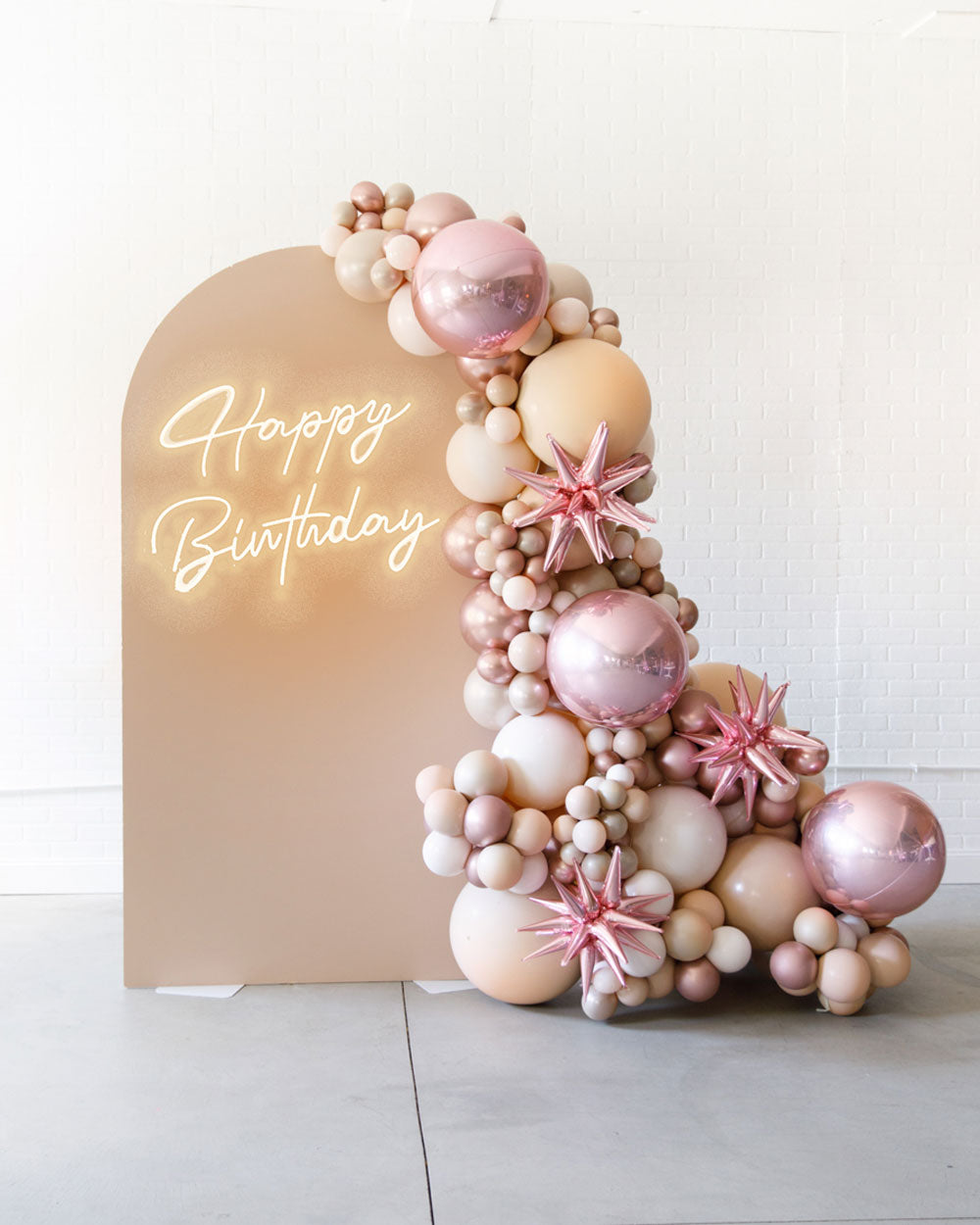 Stand out in style with this panel and balloon garland design. This includes a 7ft panel backdrop with organic balloon garland to match. Add foil accents to make your photo backdrop stand out even more!