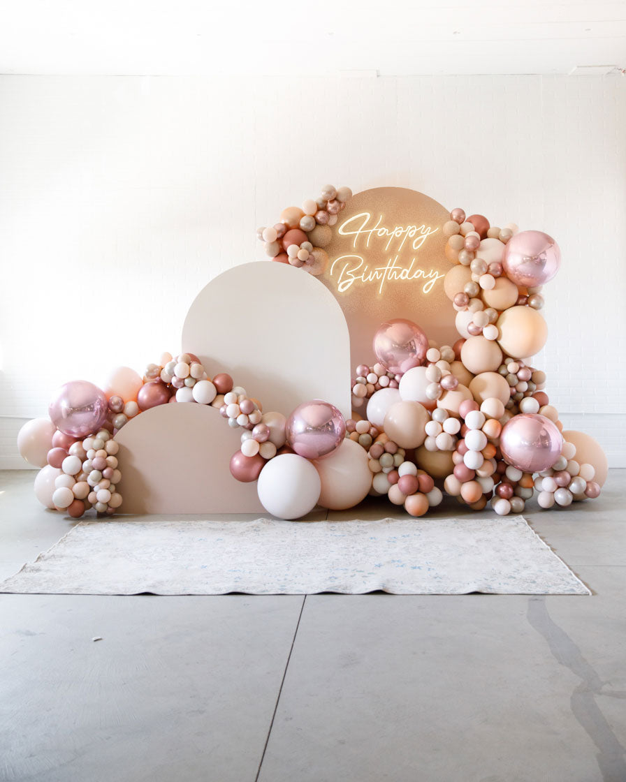 Stand out in style with this panel and balloon garland design. This includes a 7ft panel backdrop with organic balloon garland to match. Add foil accents to make your photo backdrop stand out even more!