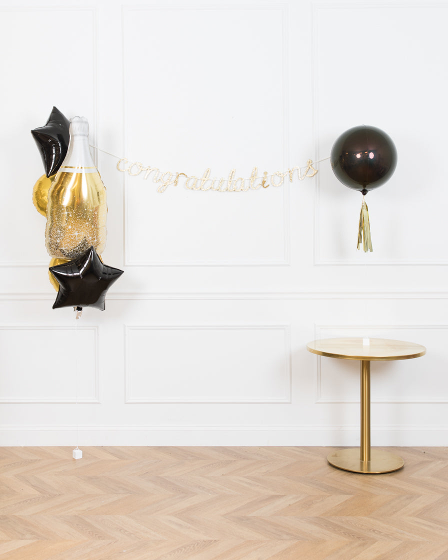 Bring your office or staff milestone celebration to life with our all foil balloon set. This includes a foil balloon bouquet and orb centerpiece. With a paper congratulations banner, any office space can become an instant celebration.