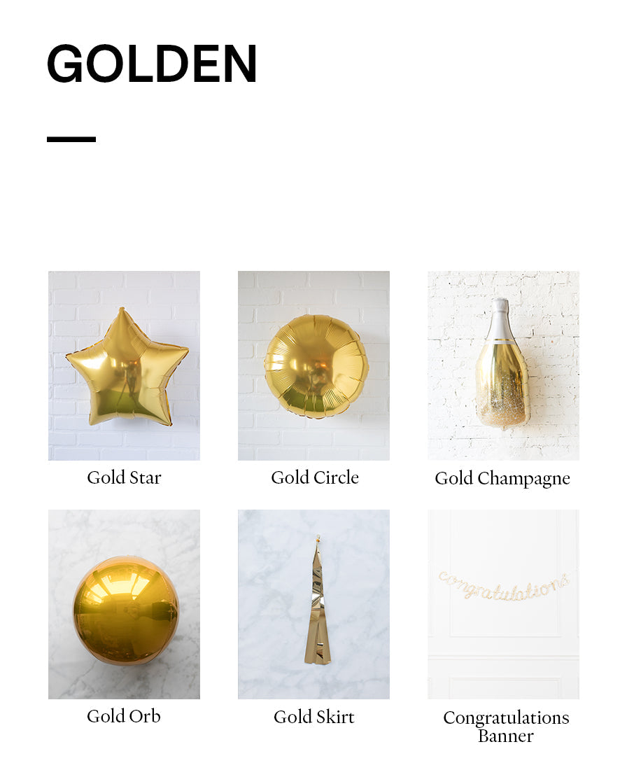 Foil - rose gold star, rose gold circle, gold champagne bottle