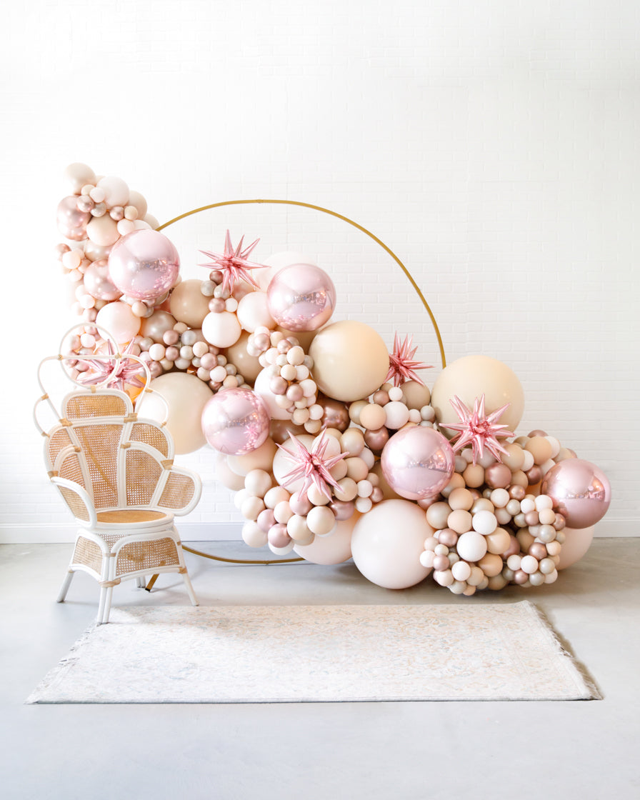 Make this a celebration you'll never forget with our signature garland on circular frame. This design creates an instant photo backdrop that your guests will love! With a gold frame this stand alone design can be used in any space with ease.