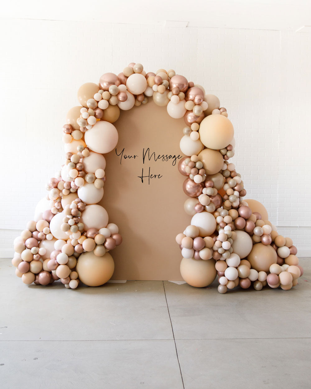 Stand out in style with this panel and balloon garland design. This includes a 7ft panel backdrop with organic balloon garland to match. Add foil accents to make your photo backdrop stand out even more!