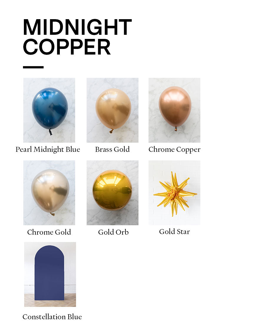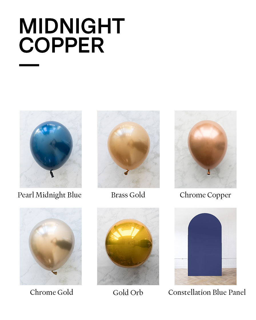 Balloon - chrome gold, chrome copper, pearl midnight blue, brass gold