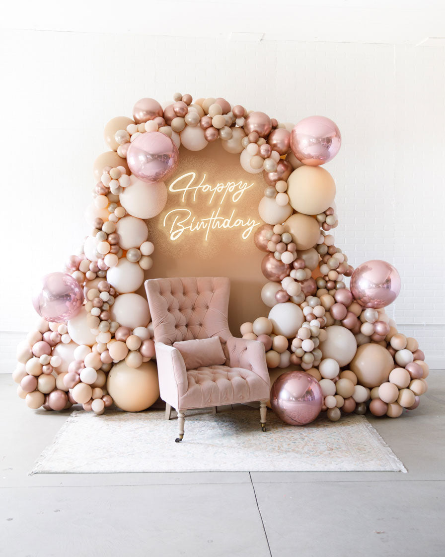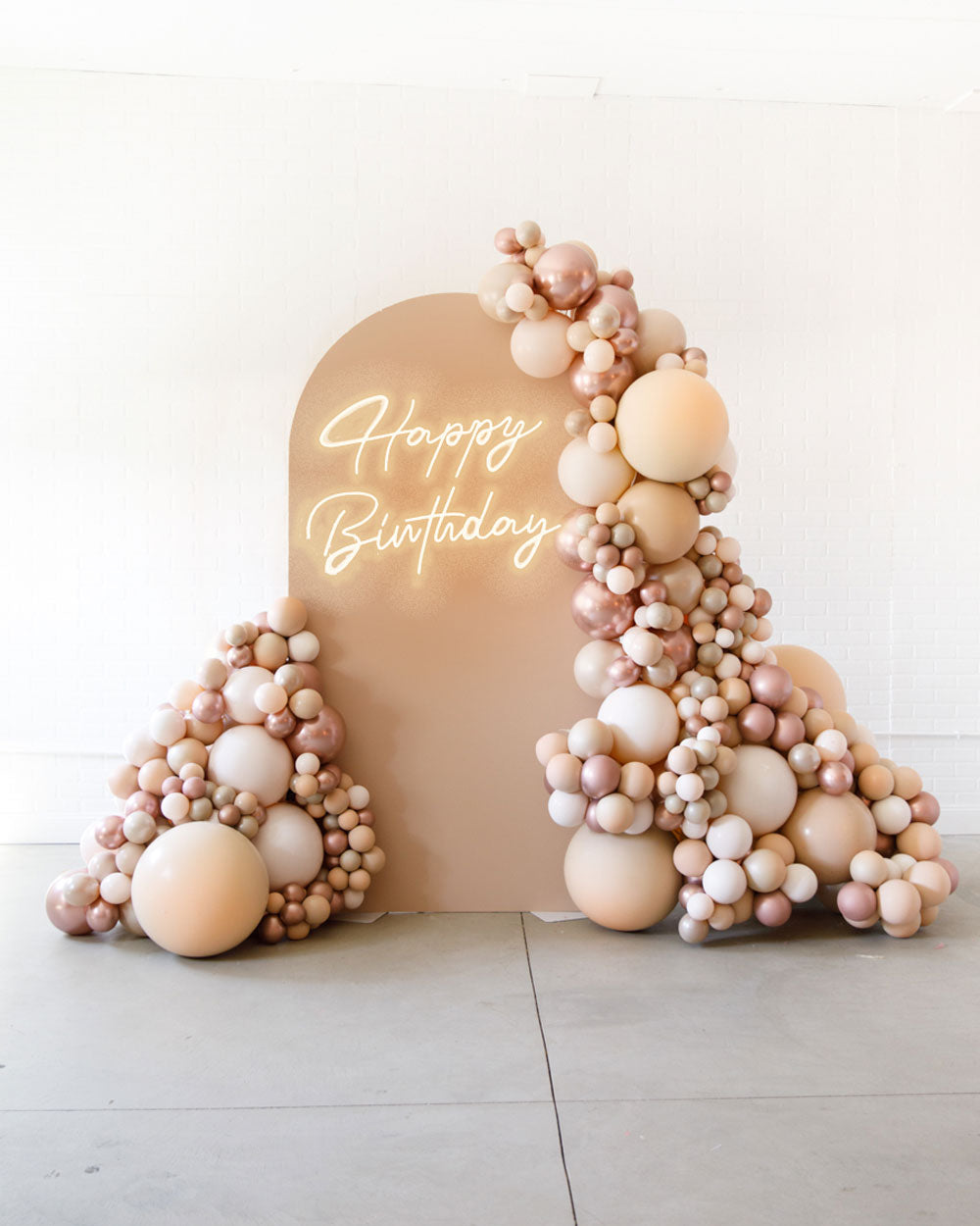 Stand out in style with this panel and balloon garland design. This includes a 7ft panel backdrop with organic balloon garland to match. Add foil accents to make your photo backdrop stand out even more!
