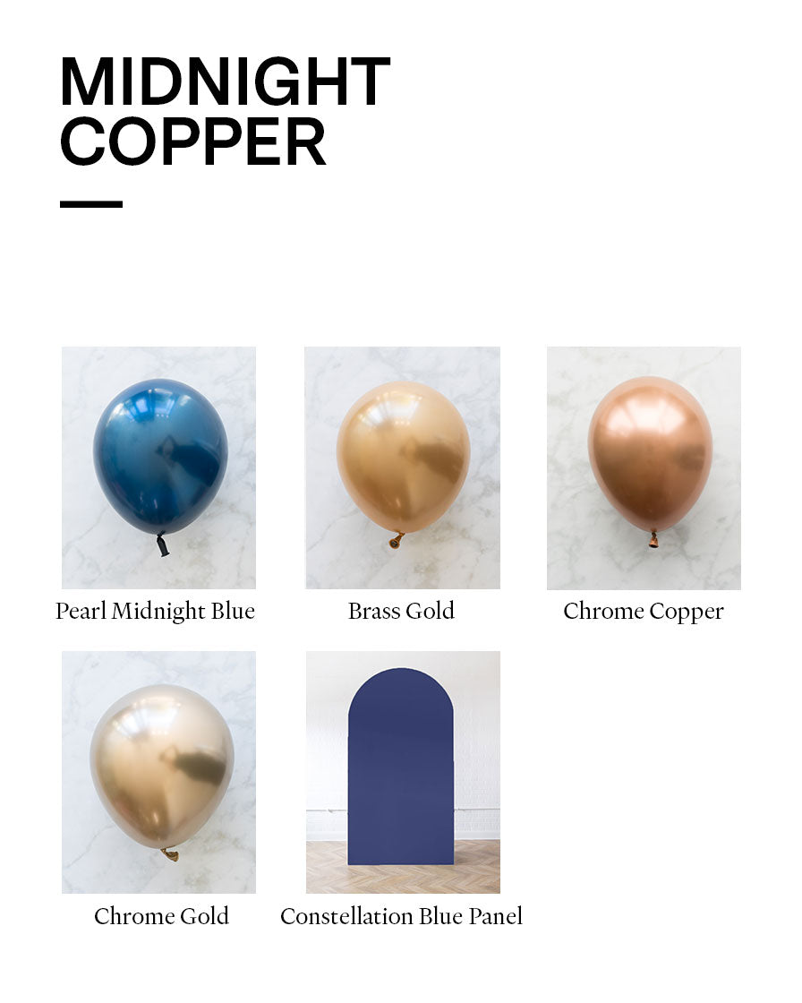Balloon - chrome gold, chrome copper, pearl midnight blue, brass gold
