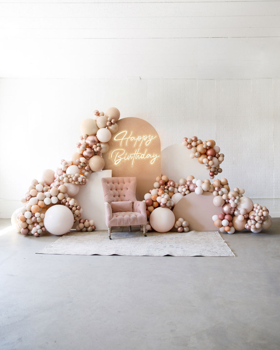 Stand out in style with this panel and balloon garland design. This includes a 7ft panel backdrop with organic balloon garland to match. Add foil accents to make your photo backdrop stand out even more!
