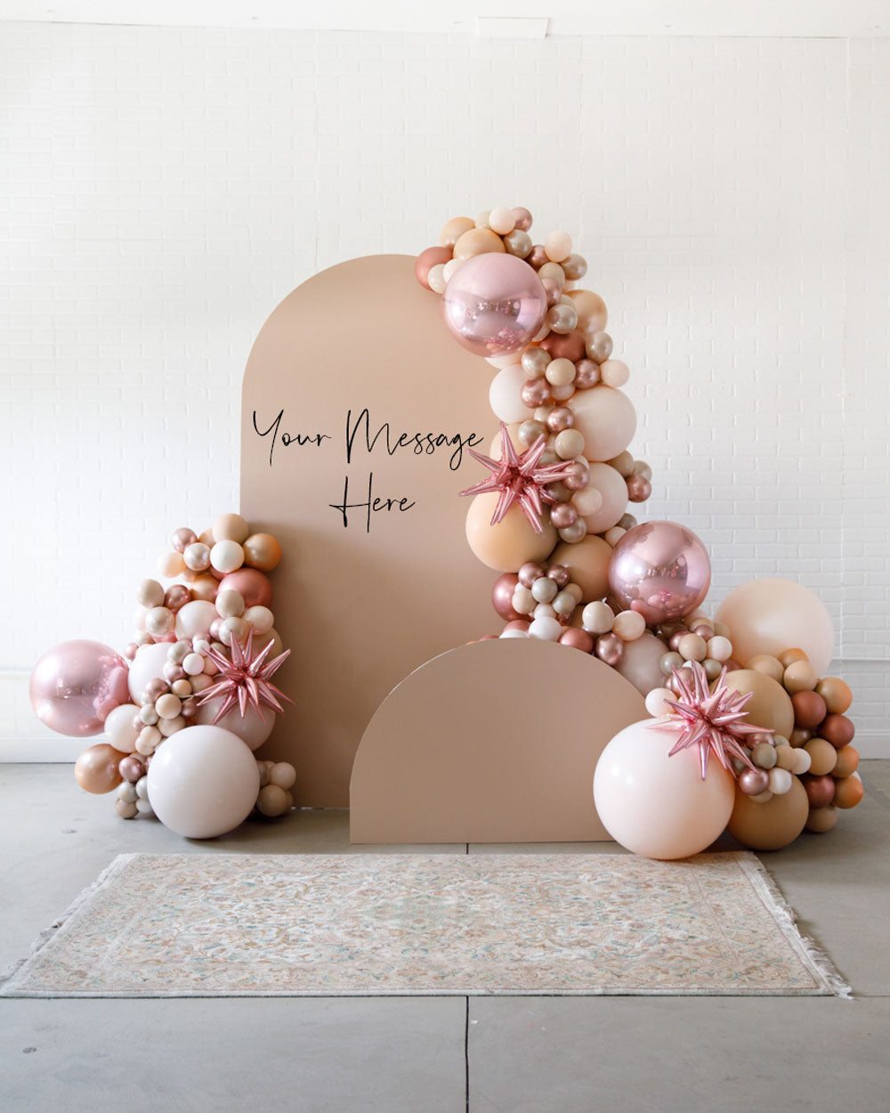 Stand out in style with this panel and balloon garland design. This includes a 7ft panel backdrop with organic balloon garland to match. Add foil accents to make your photo backdrop stand out even more!