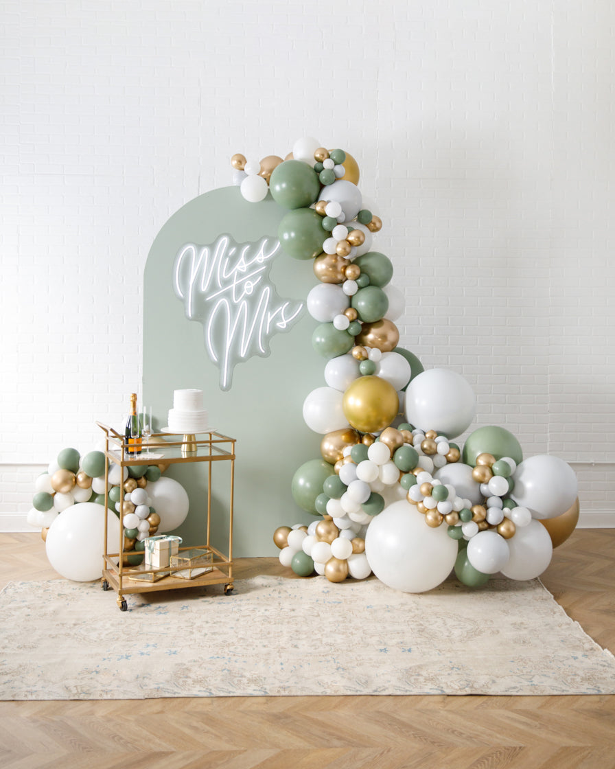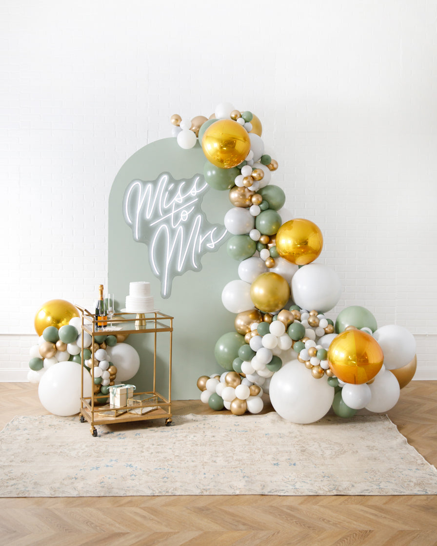Stand out in style with this panel and balloon garland design. This includes a 7ft panel backdrop with organic balloon garland to match. Add foil accents to make your photo backdrop stand out even more!