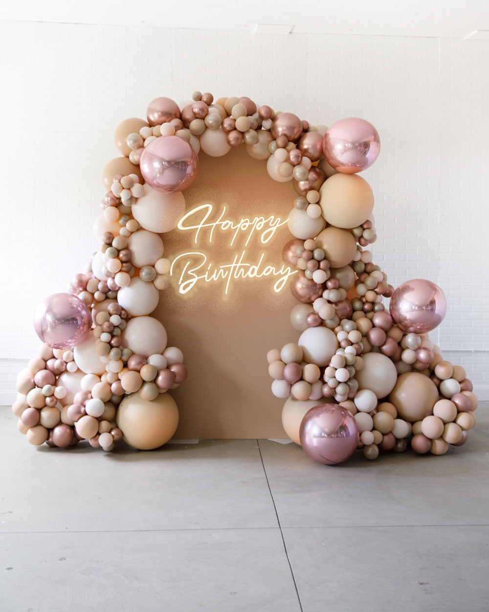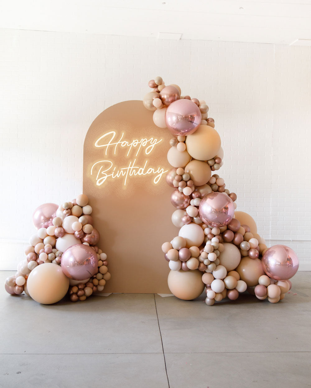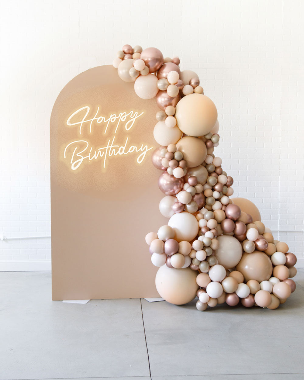 Stand out in style with this panel and balloon garland design. This includes a 7ft panel backdrop with organic balloon garland to match. Add foil accents to make your photo backdrop stand out even more!