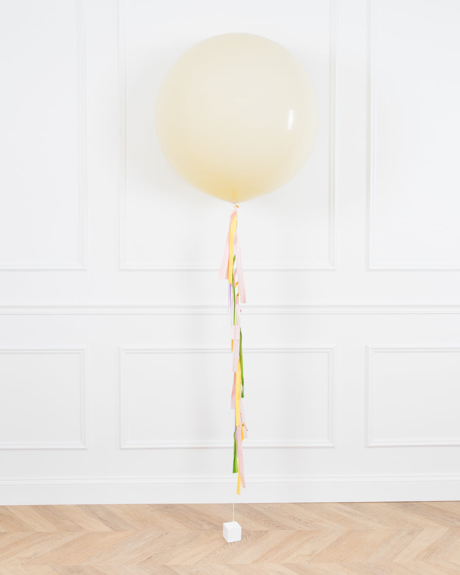 This product is Ready-To-Party™. Comes inflated, on a weight and dressed with tassel. Simply unbag and enjoy!