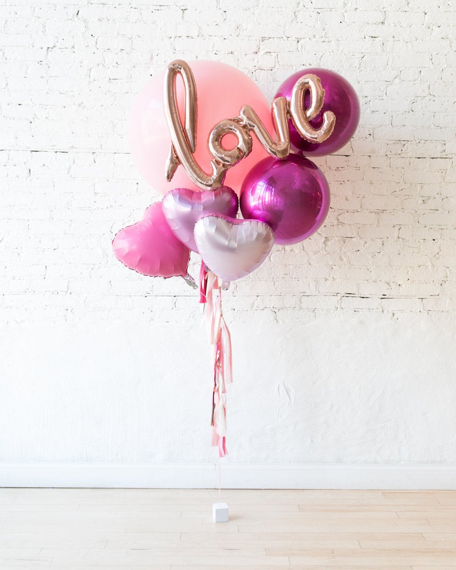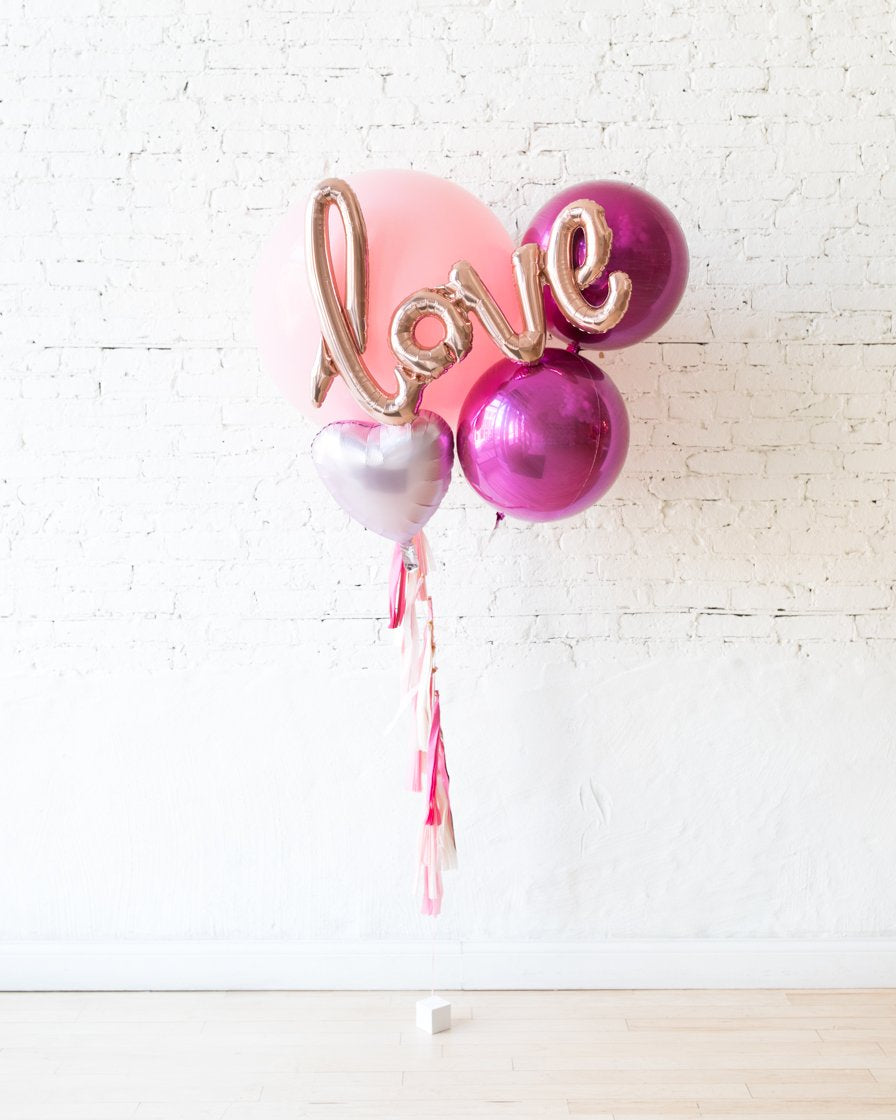 Balloon - pink giant, fuchsia orbs, rose gold love script