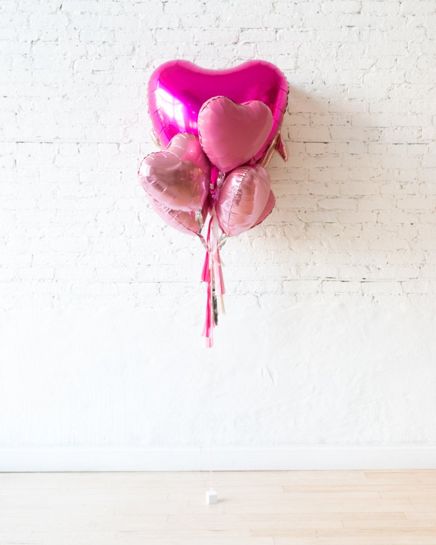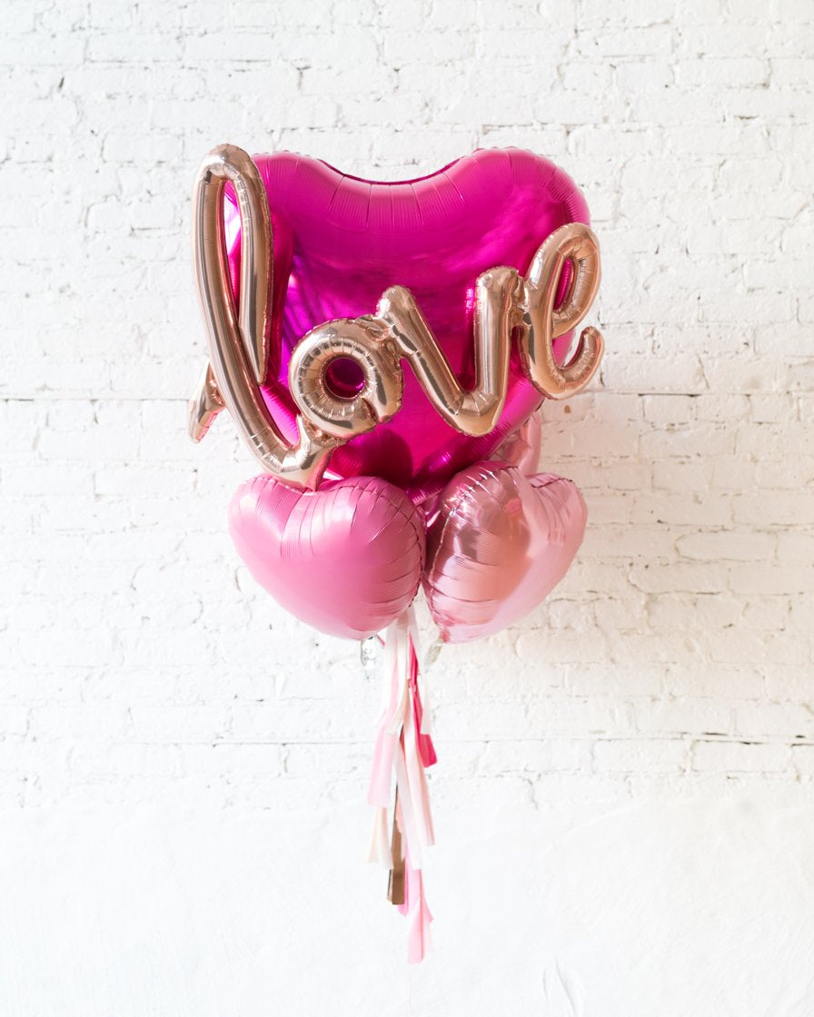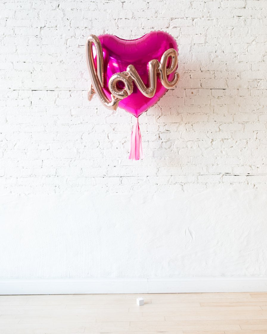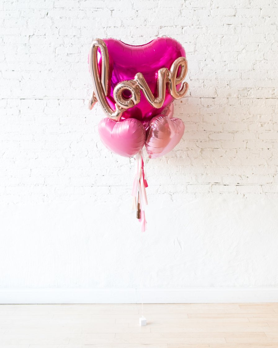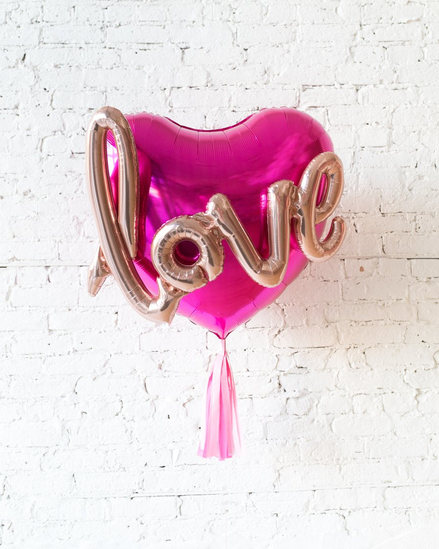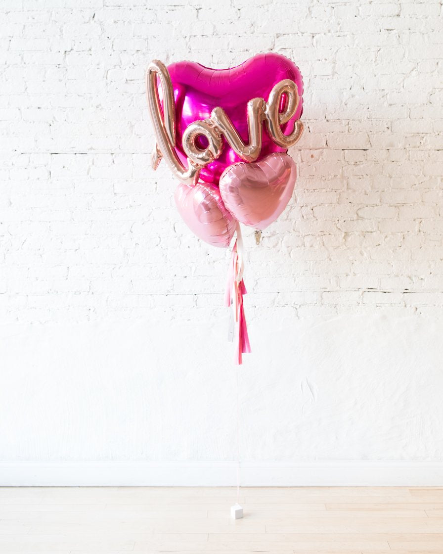 Balloon - fuchsia heart , pearl pink heart, rose gold love script