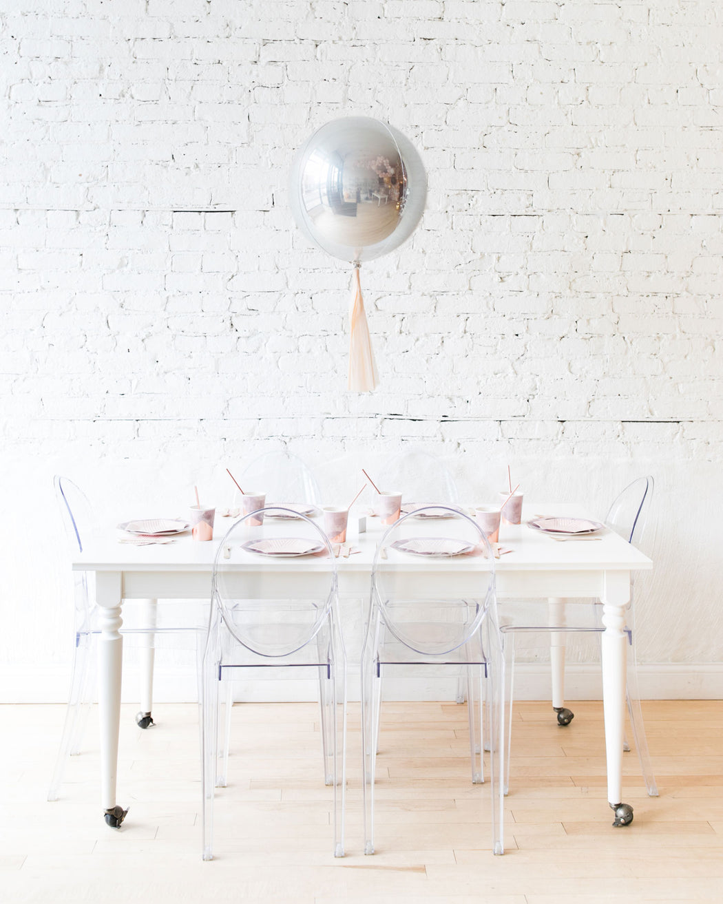 16in Silver Orb Foil Balloon and Blush Skirt Centerpiece