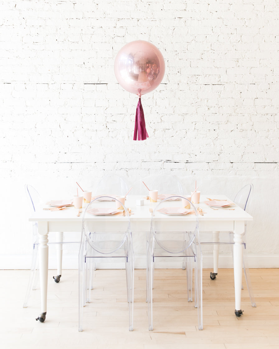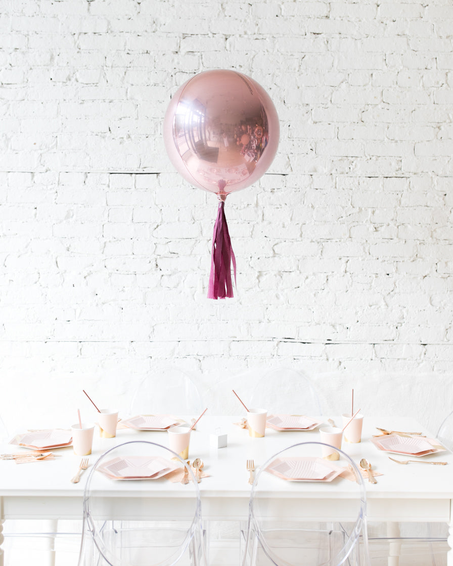 16in Rose Gold Orb Foil Balloon with Burgundy Skirt Centerpiece