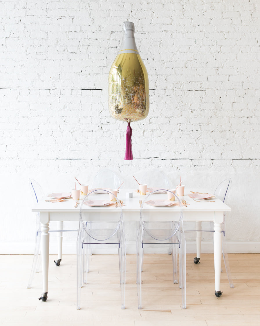 This fun balloon centerpiece is a perfect choice to dress up your tablescape. Place on dinner table, mimosa bar, cocktail table or bar cart.