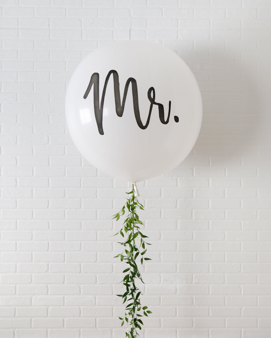 Our Giant Balloon with Mrs or with Mr script with fresh greenery tassel is a fun and effortless way to celebrate the bride and groom to be! Pair with another giant or place by the sweets table for easy bridal shower or wedding decor.