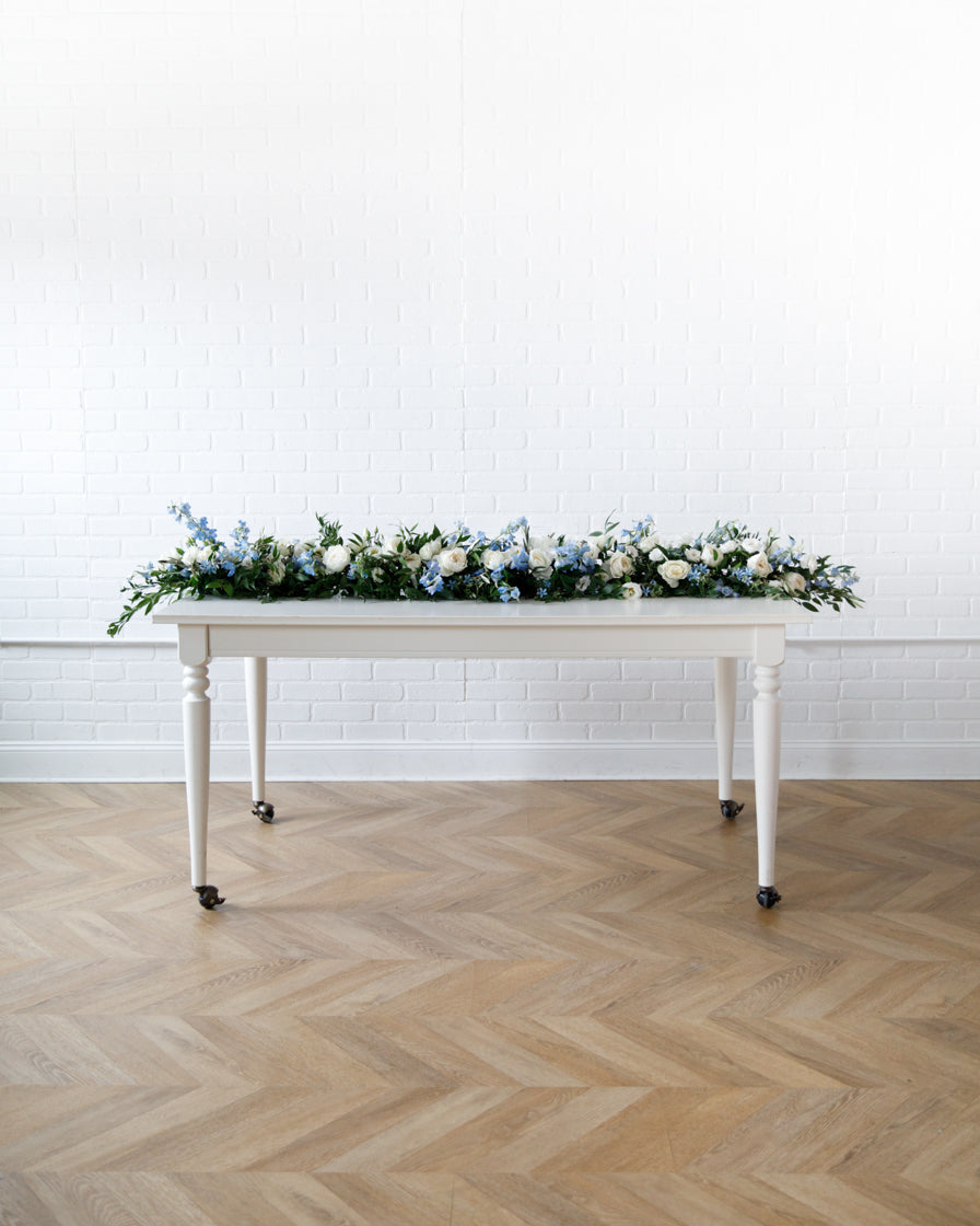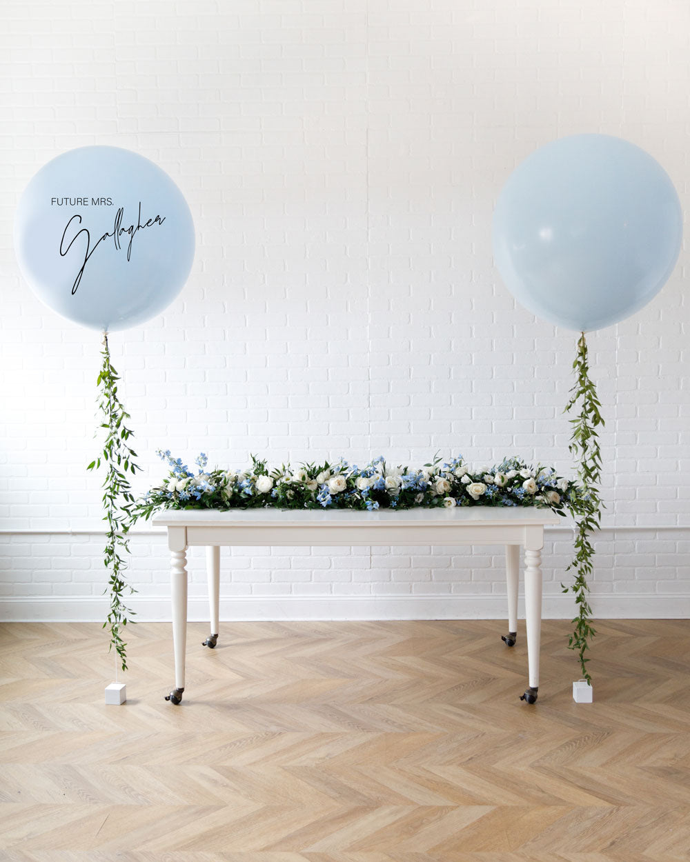 Sophisticated and simple, The Marion includes a beautiful greenery runner and two giant balloons with greenery for a cohesive look on your big day. With a vinyl message, a sweets, entry or gift table will feel uniquely your own.