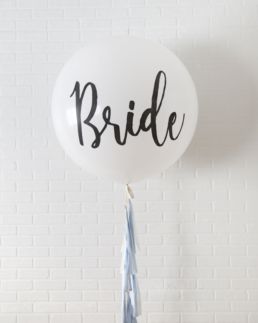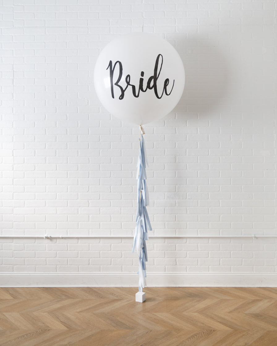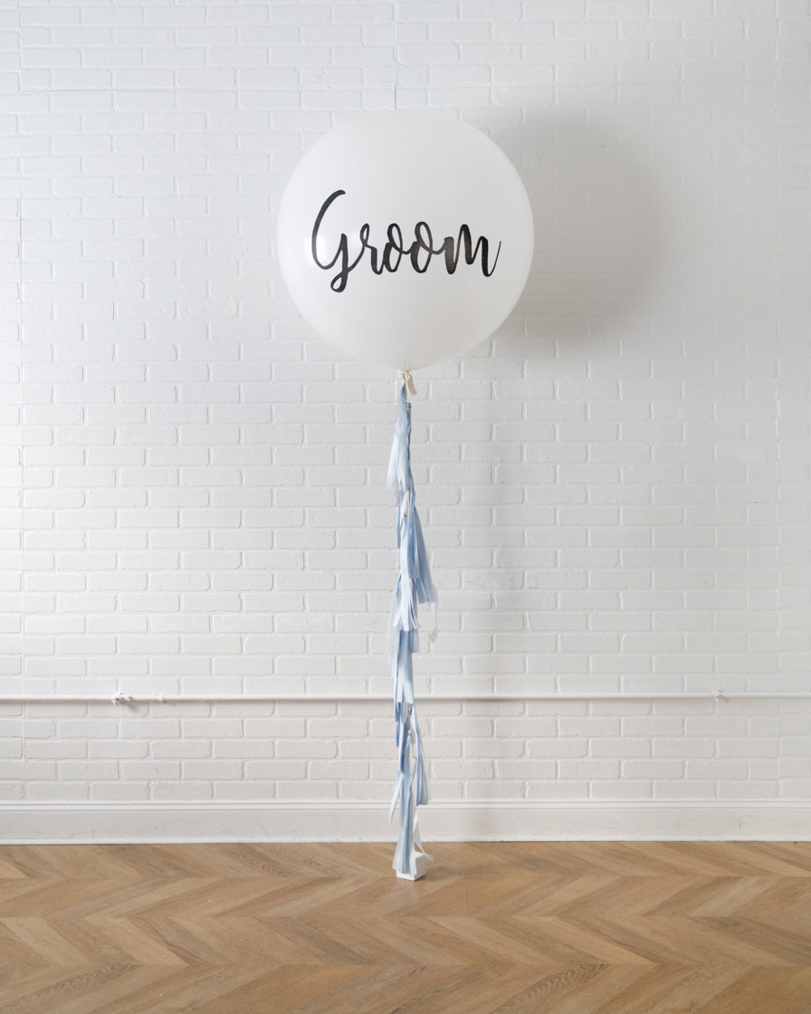 Our Giant Balloon with Bride or Groom Script with tassel is a fun and effortless way to celebrate the bride/groom to be! Pair with another giant balloon or place by the sweets table for easy bridal shower or wedding decor.