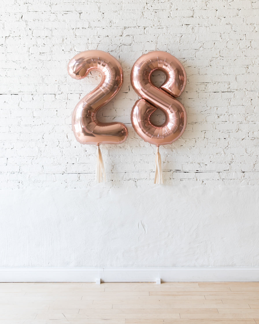 34in Rose Gold Foil Numbers with Ivory Skirt