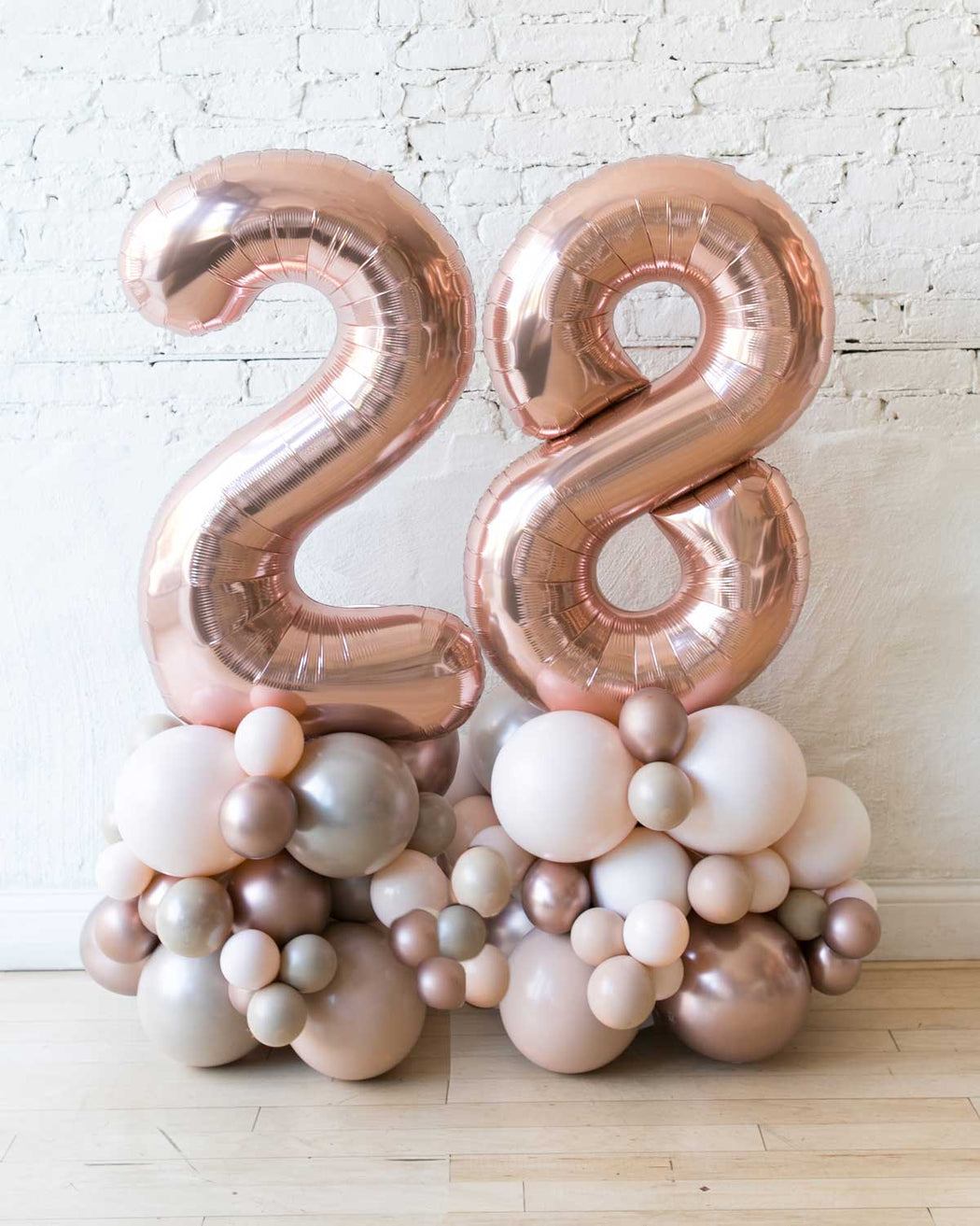 Glam Tan - Foil Number on Balloon Pedestal - 3ft