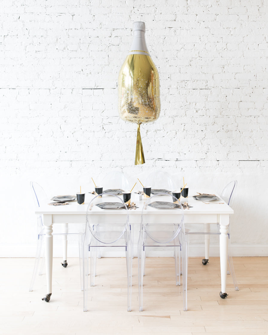 Gold Champagne Bottle Foil Balloon with Gold Skirt Centerpiece