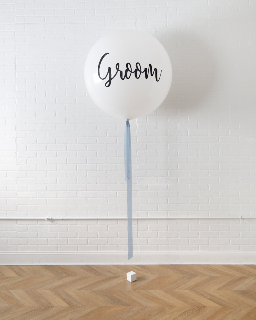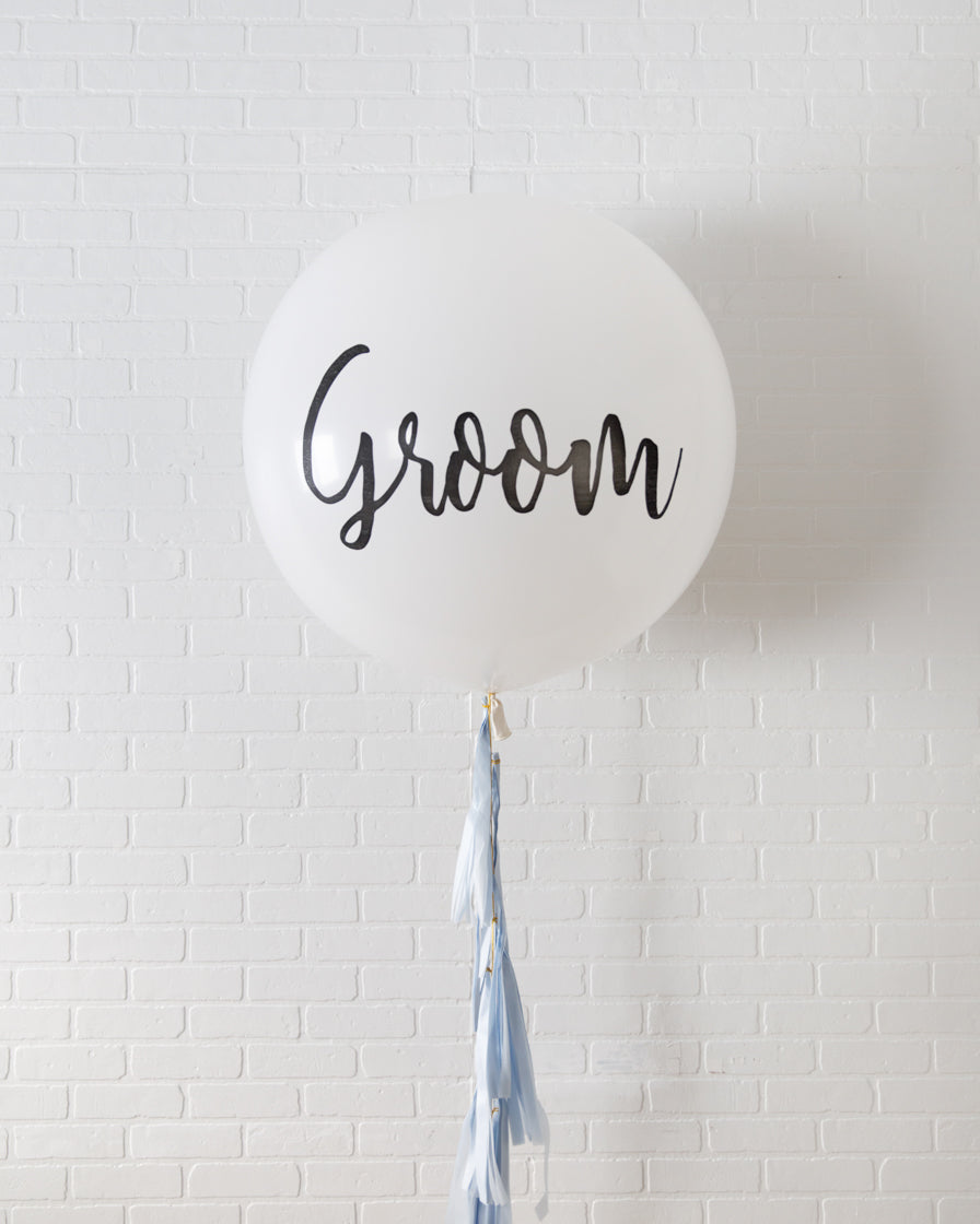 Our Giant Balloon with Bride or Groom Script with tassel is a fun and effortless way to celebrate the bride/groom to be! Pair with another giant balloon or place by the sweets table for easy bridal shower or wedding decor.