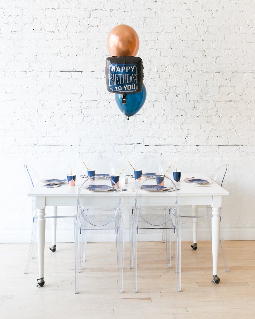 This balloon centerpiece adds a fun touch to your tablescape. Place on dinner table, dessert table, cocktail table or bar cart.