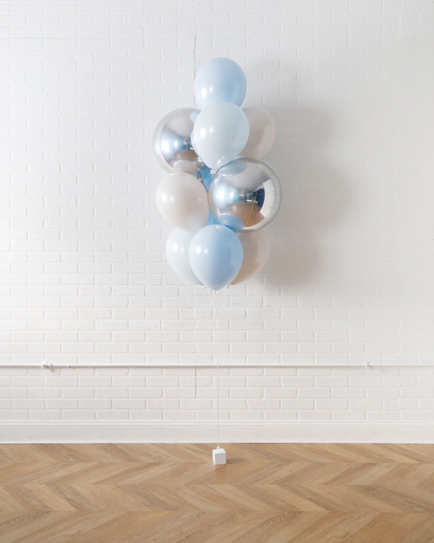 Host a beautiful shower with a orb balloon bouquet. This helium-filled decor piece includes balloons in soft shades and matching metallic orbs to add fun to any sweets table or backdrop.