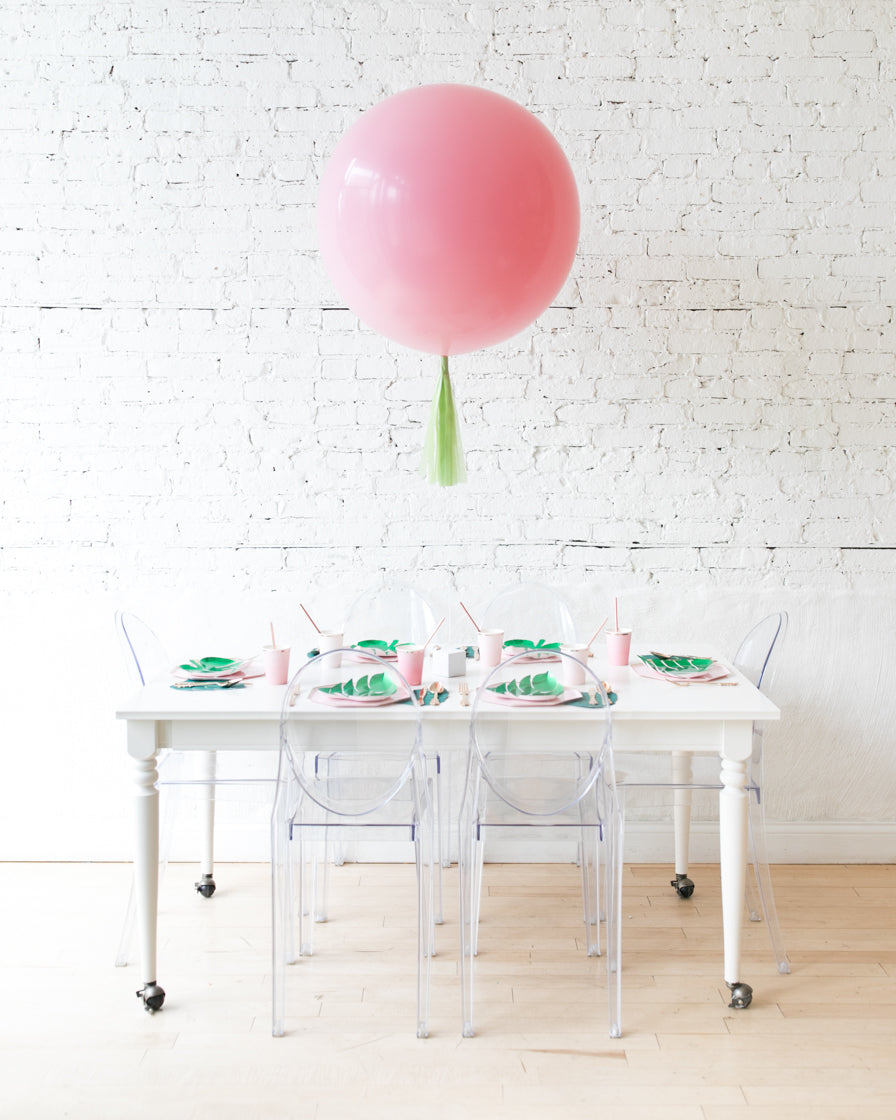 Bubblegum Pink Giant Balloon with Matcha Skirt Centerpiece