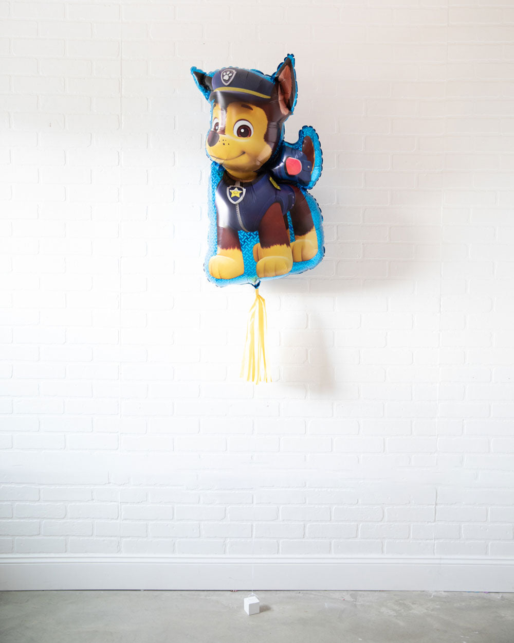 Make your little boys birthday extra fun with our Chase Paw Patrol balloon with a yellow skirt! Add this to your Paw Patrol themed birthday party for extra decoration around your sweets table or backdrop.