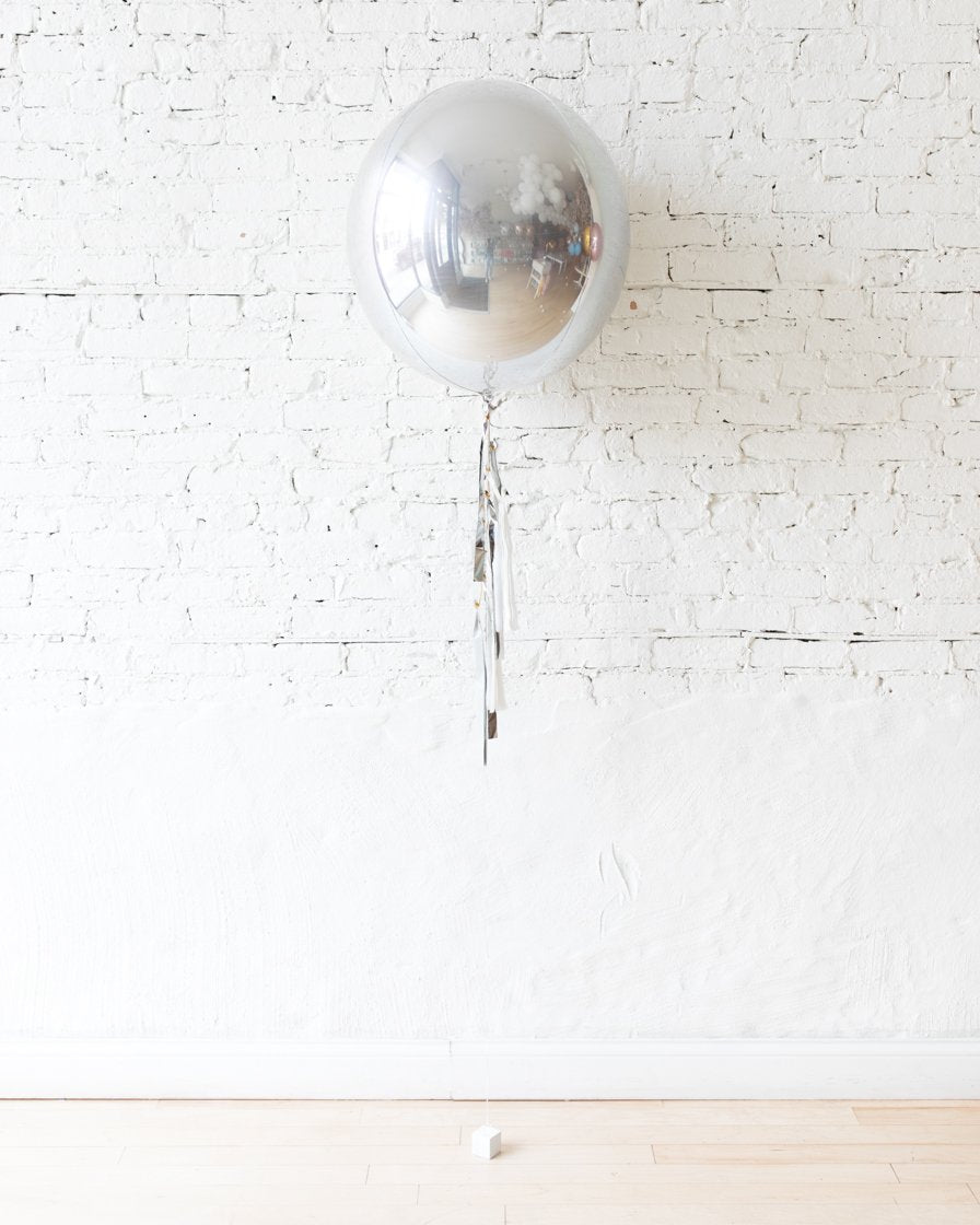 21in Silver Orb Foil Balloon and White, Grey & Silver Half-Tassel