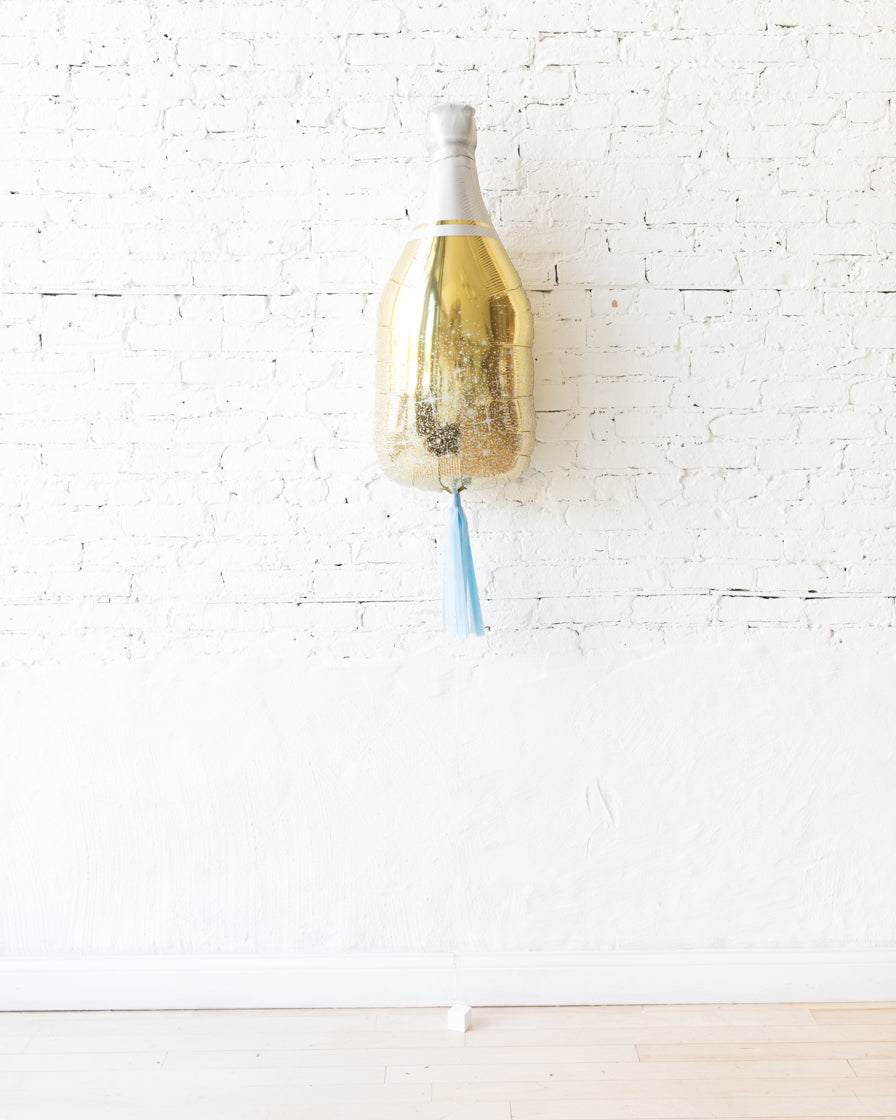 36in Gold Champagne Bottle Foil Balloon and French Blue Skirt
