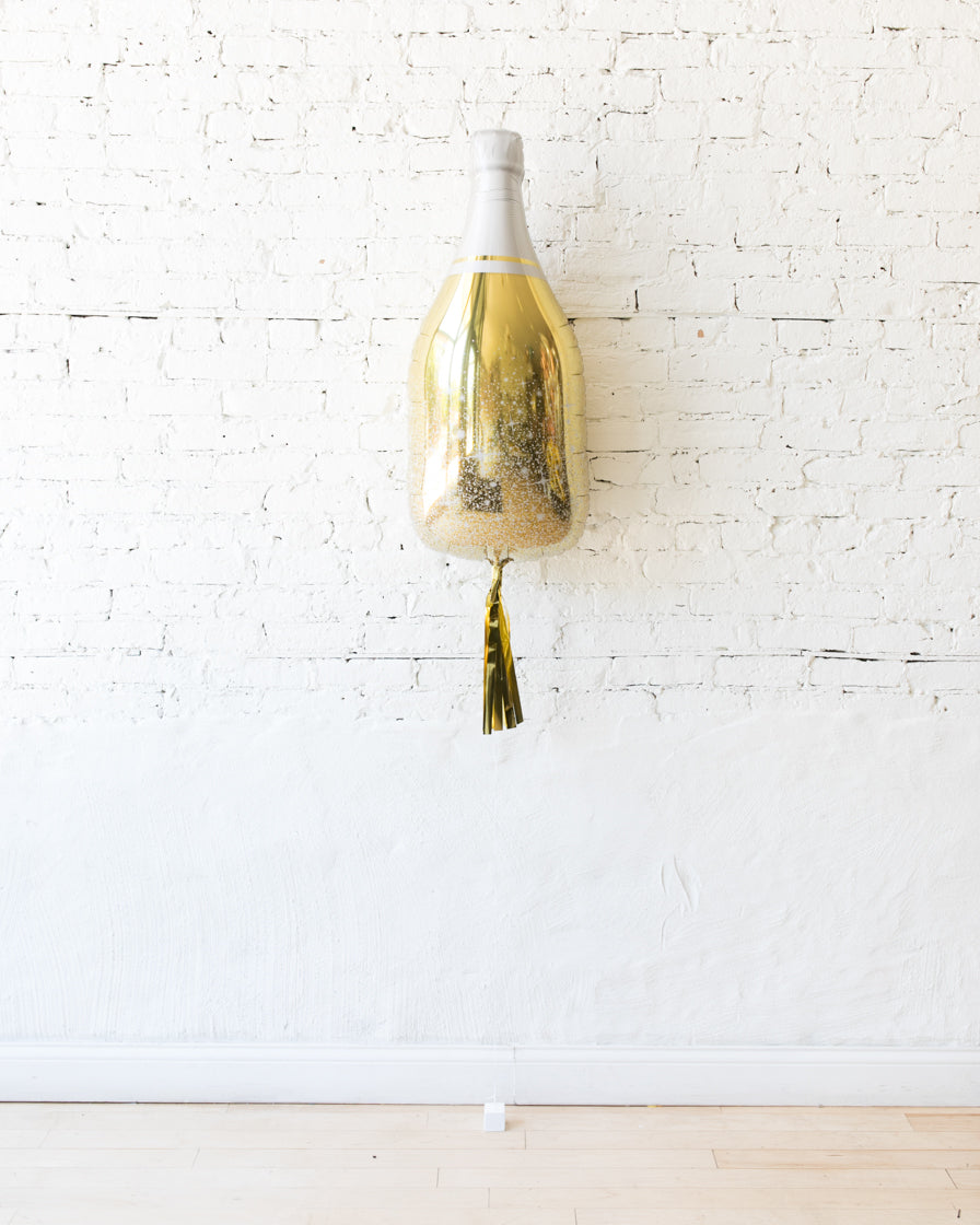 36in Gold Champagne Bottle Foil Balloon with Gold Skirt