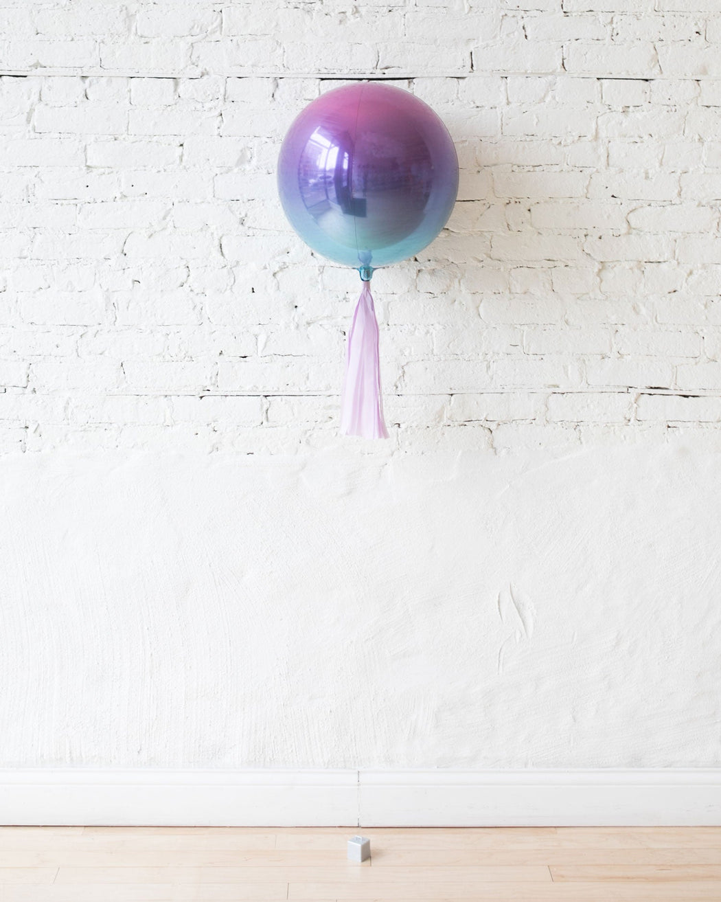 Our Mermaid Orb with turquoise skirt is a decor must-have! This ombre balloon makes for an easy centerpiece option at your event.