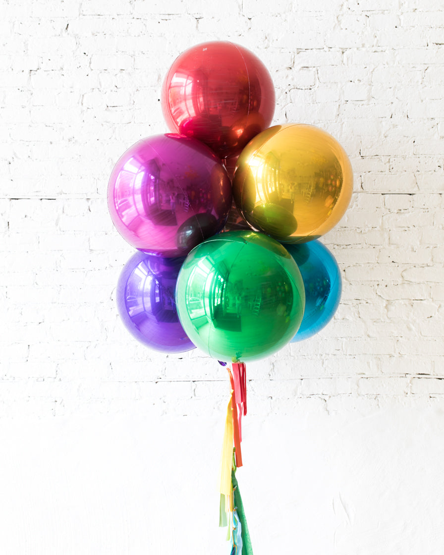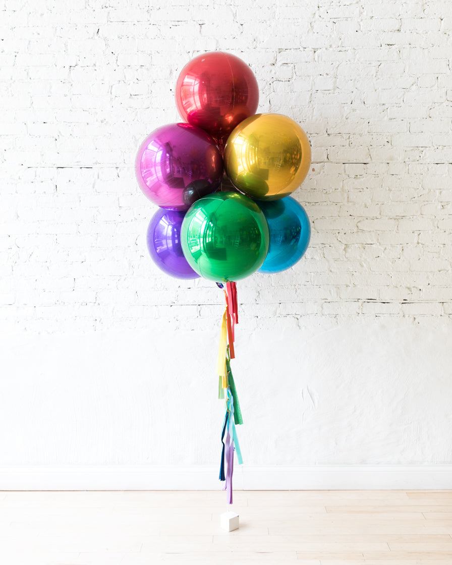 Rainbow Palette Orb Balloons and Tassel - bouquet of 7