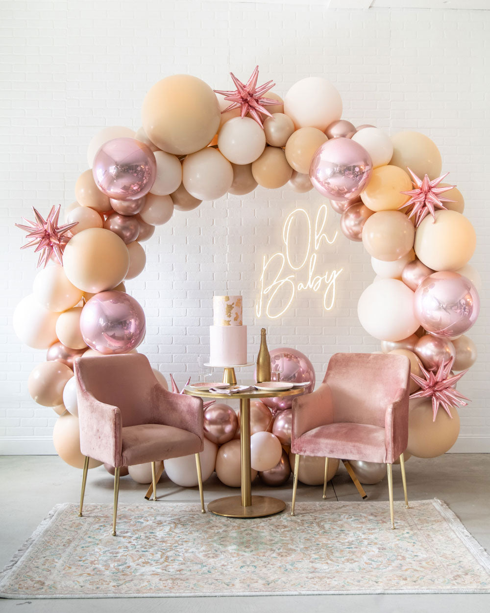 Make this a celebration you'll never forget with our signature garland on circular frame. This design creates an instant photo backdrop that your guests will love! With a gold frame this stand alone design can be used in any space with ease. Make the look even better with foil accents and a personalized message that's one of a kind. Add a neon sign to your frame for an even more memorable event.