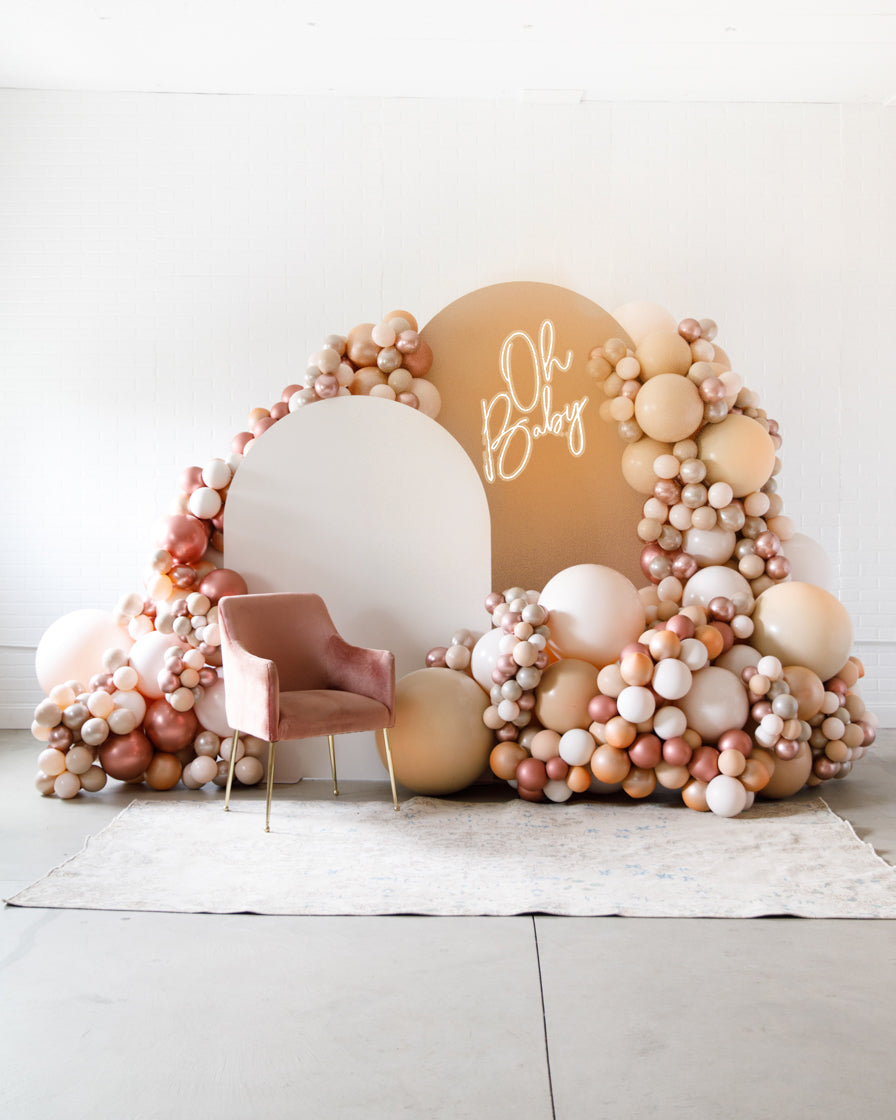 Stand out in style with this panel and balloon garland design. This includes a 7ft panel backdrop with organic balloon garland to match. Add foil accents to make your photo backdrop stand out even more!