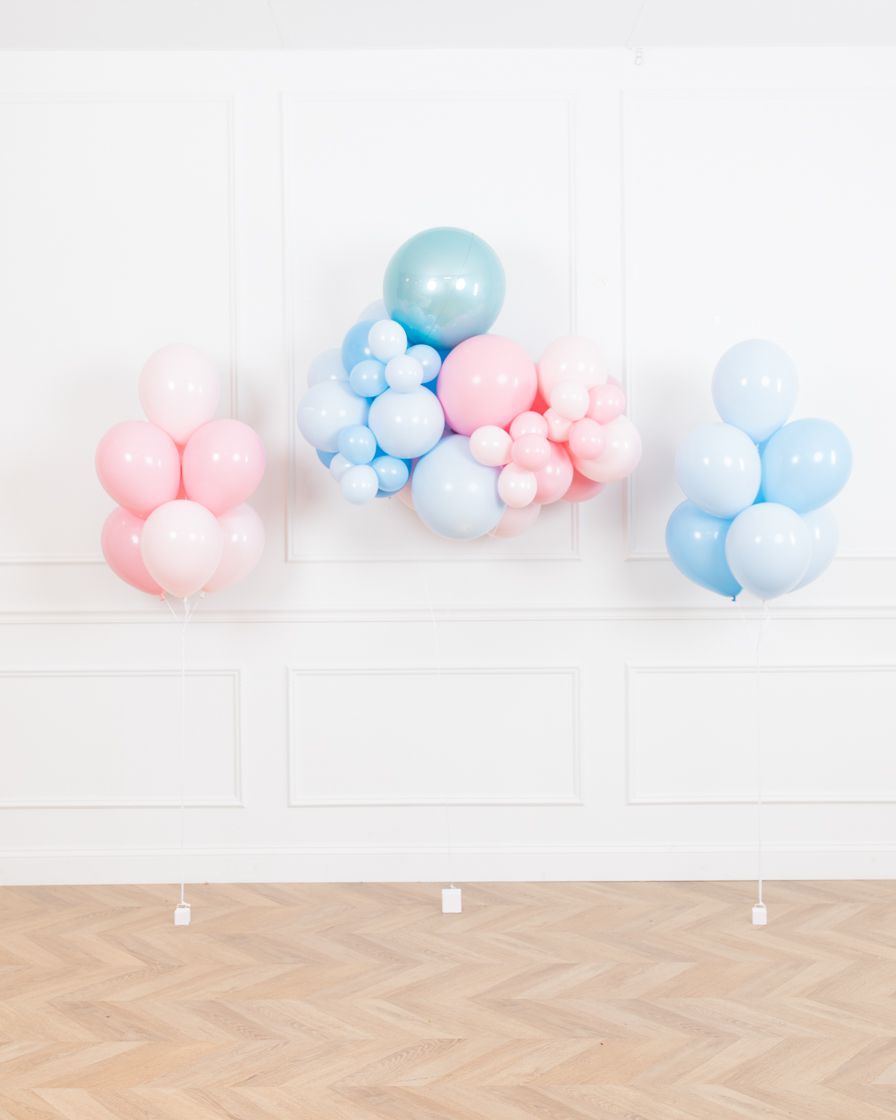 Add plenty of fun to your gender reveal with this stunning decor. This includes two balloon bouquets and a 3ft colorful floating balloon arch to dress up any space in style for a special gender reveal.