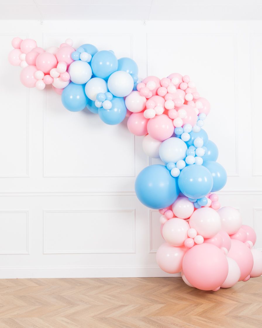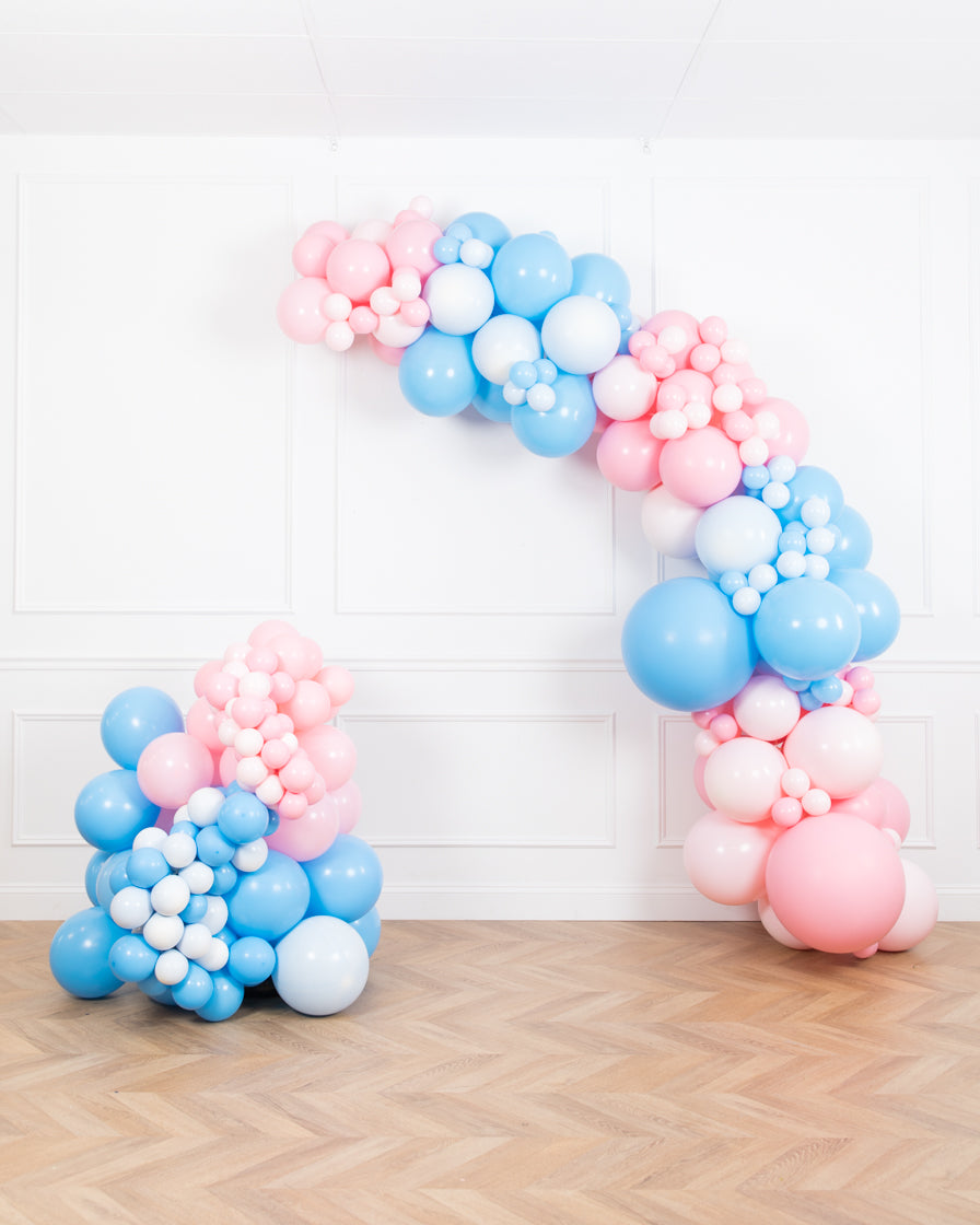 Make a statement with our gender reveal garland. This includes a 12ft air filled balloon garland, as well as a balloon cluster. Add this to your space for a one of kind gender reveal celebration.