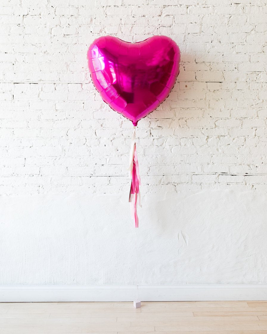 GIFT-36in Magenta Heart Foil Balloon and Shades of Pink Half-Tassel