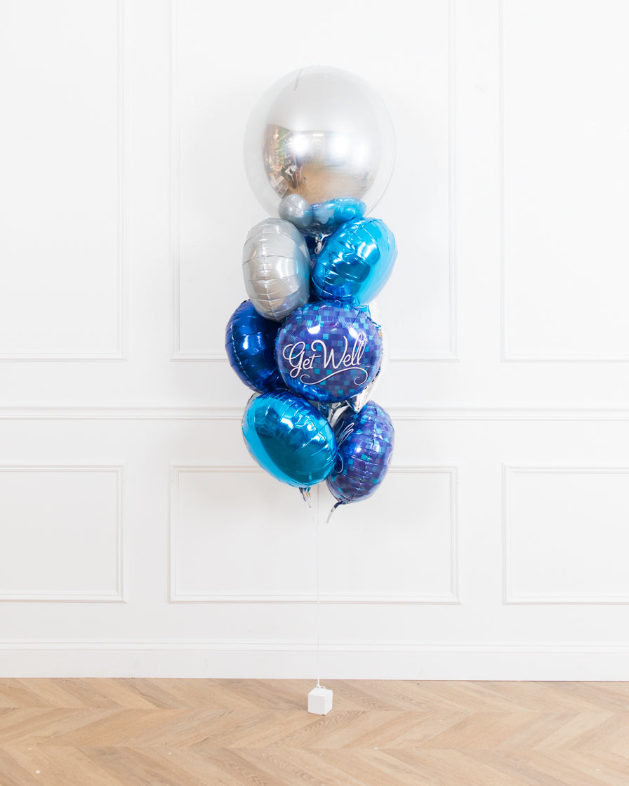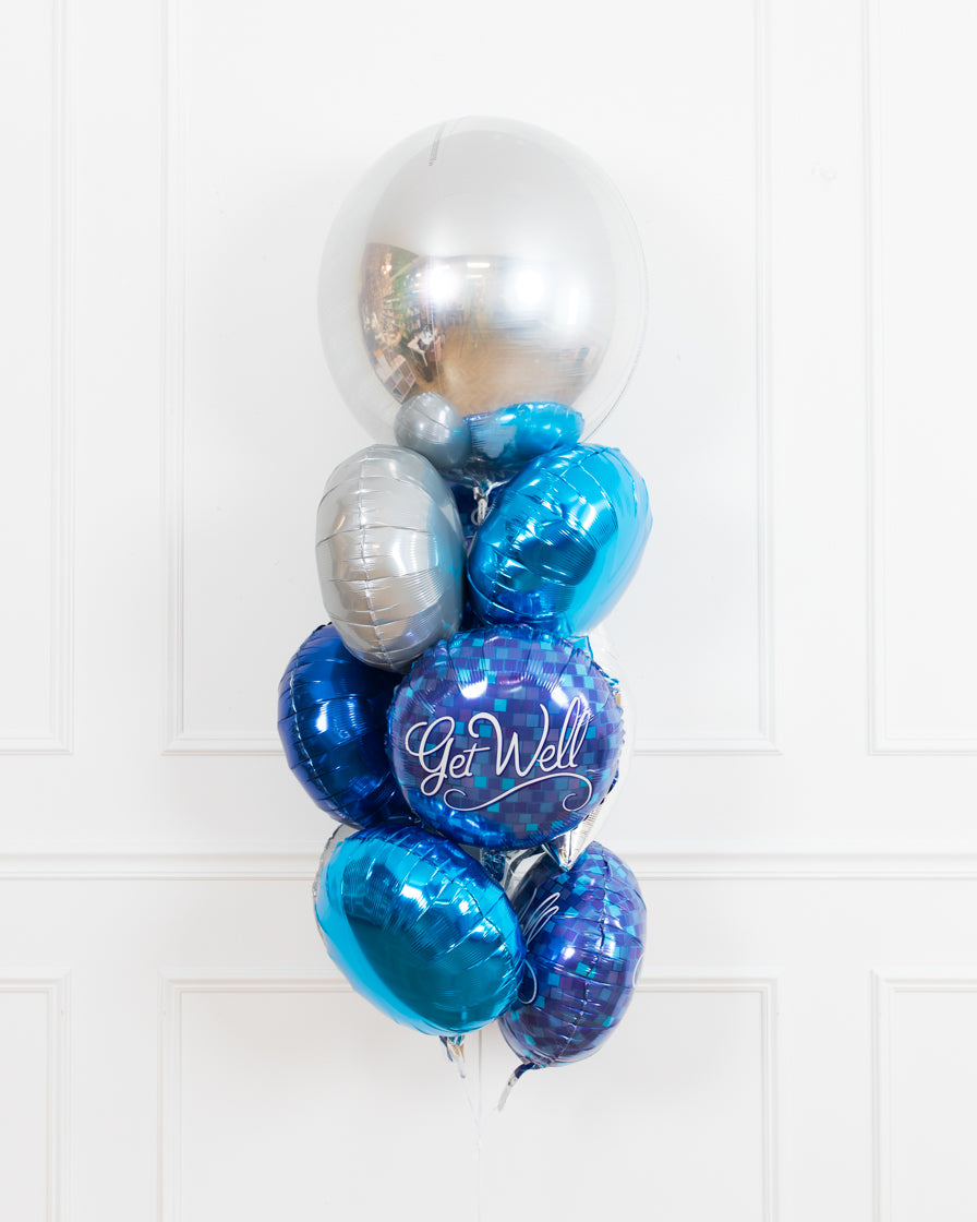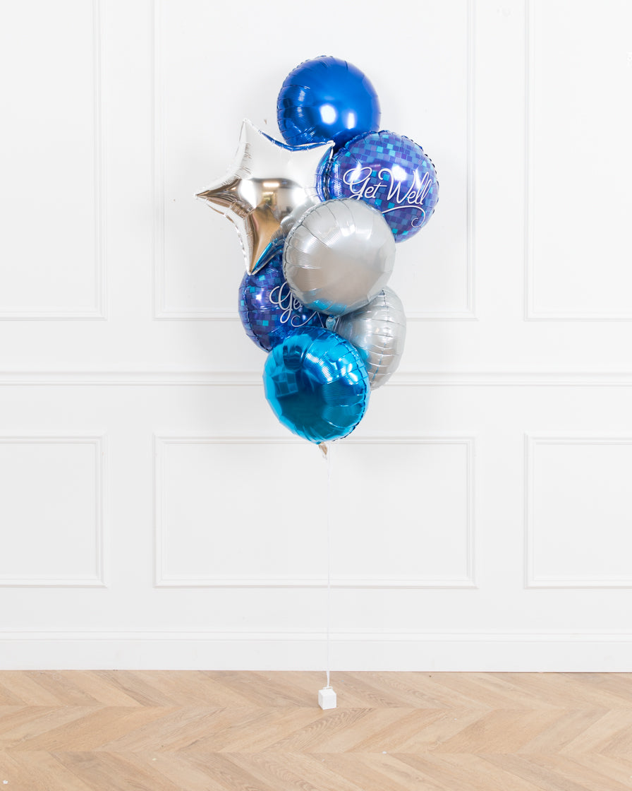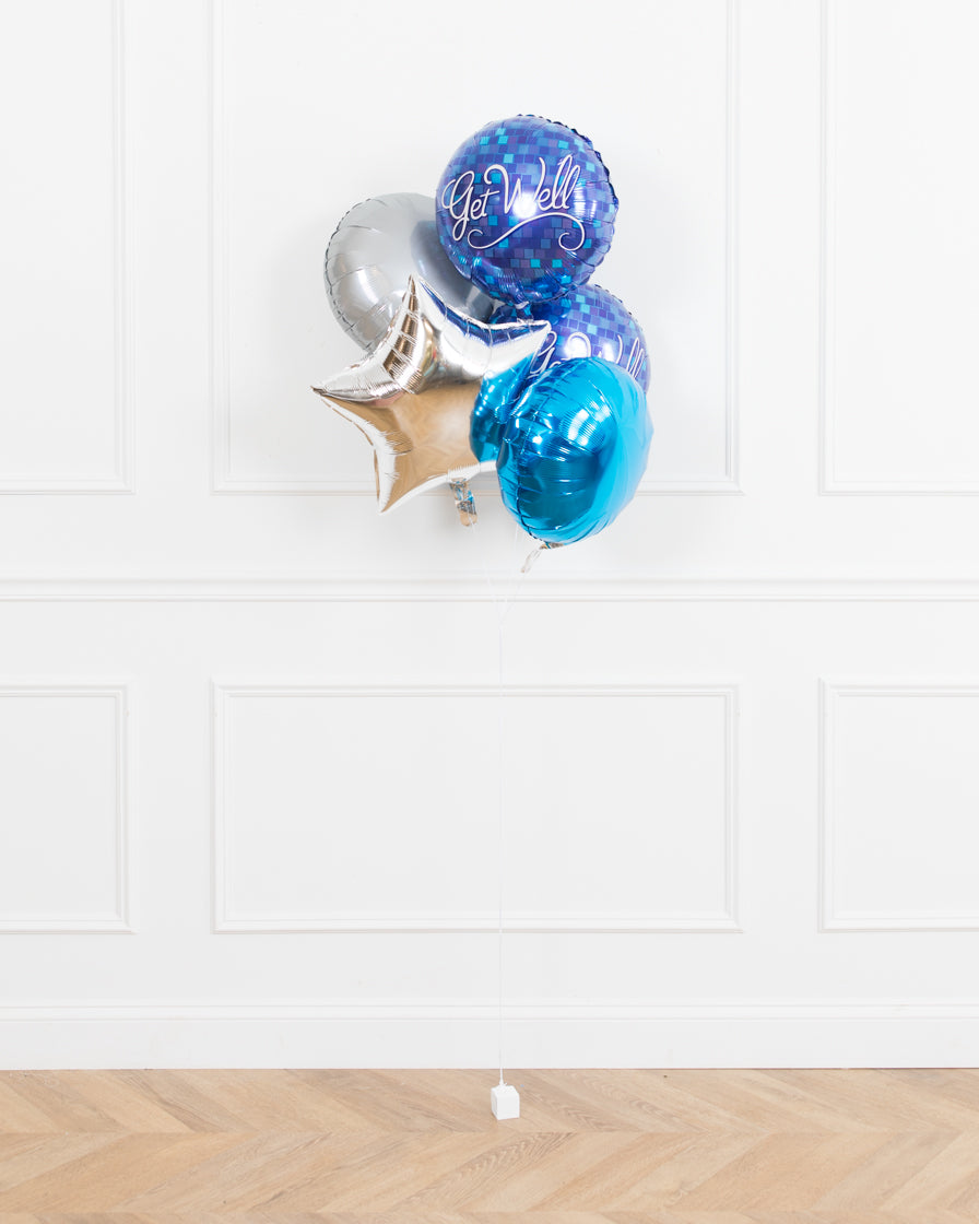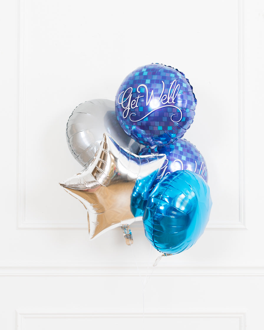 Foil - silver star, silver circle, blue circle, blue get well soon round