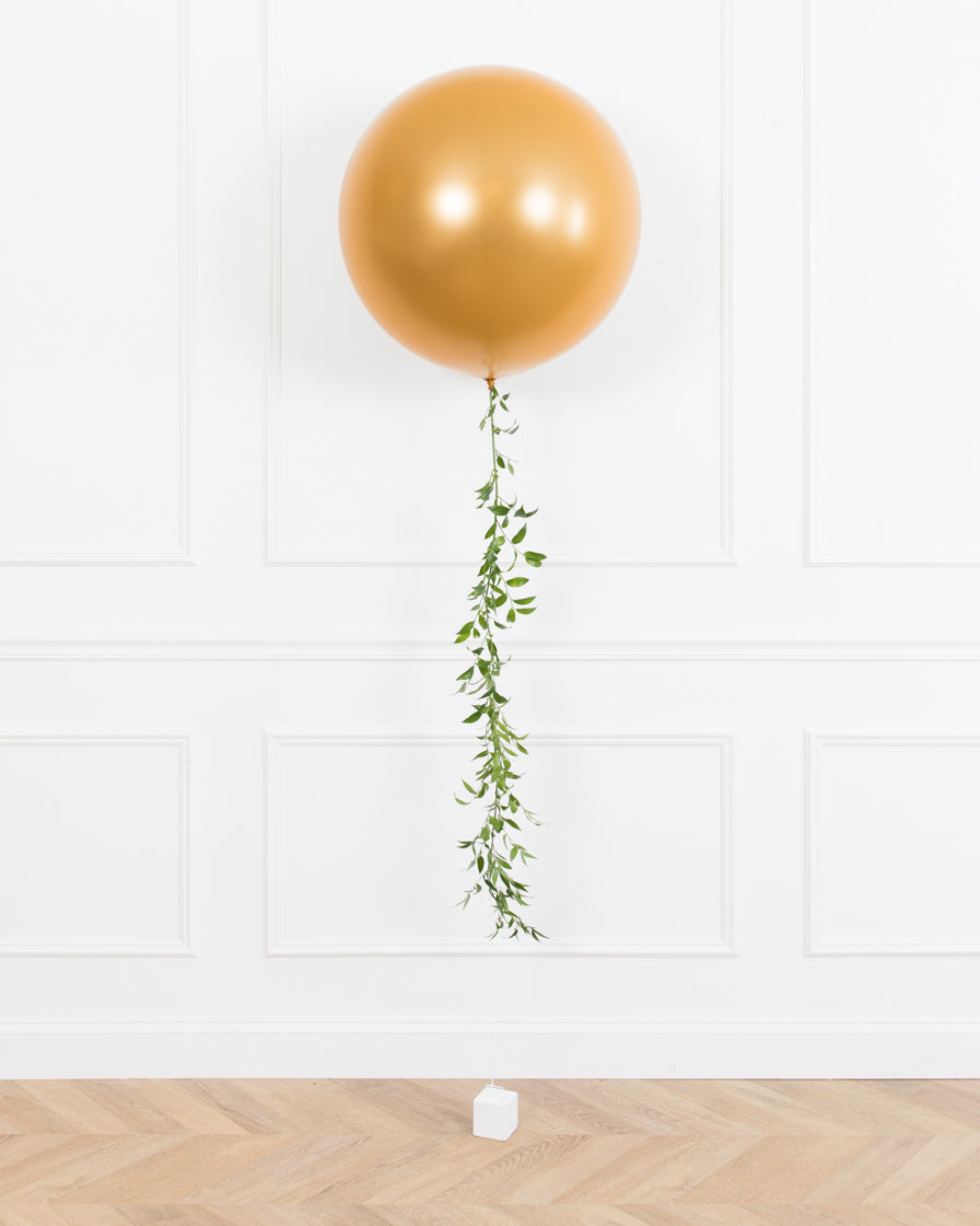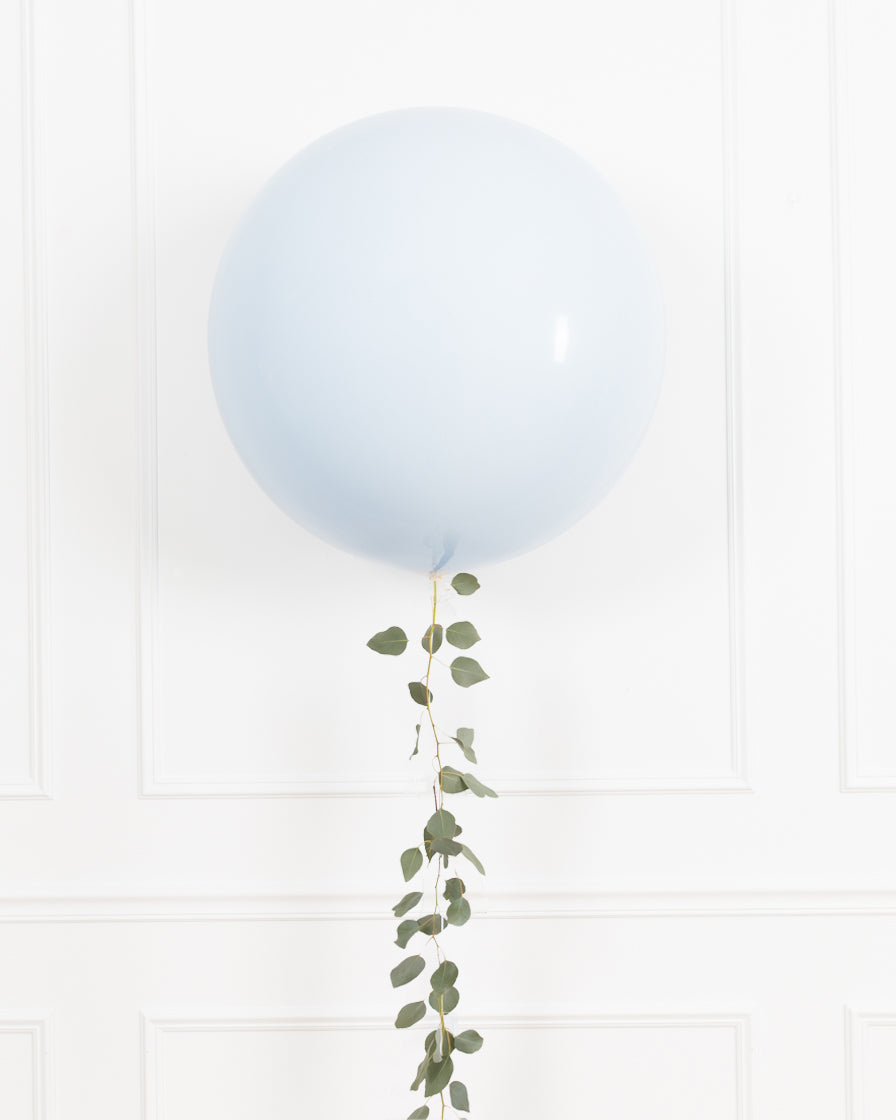 An elevated twist to our giant balloons, this 36" latex balloon is finished with fresh eucalyptus for an extra special celebration.