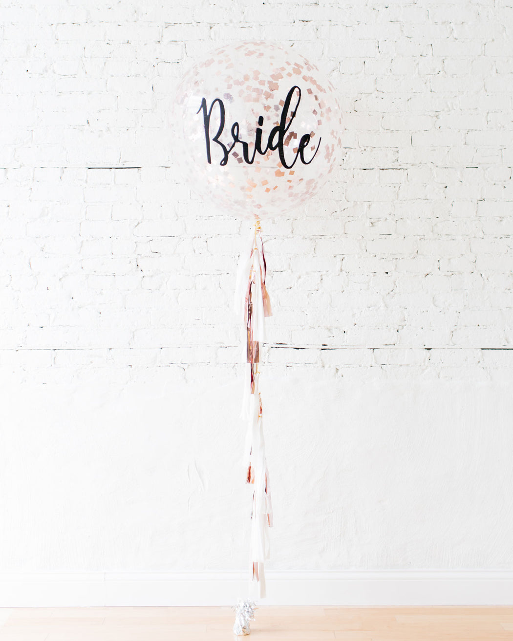 Bride Confetti Giant Balloon and White & Rose Gold Tassel