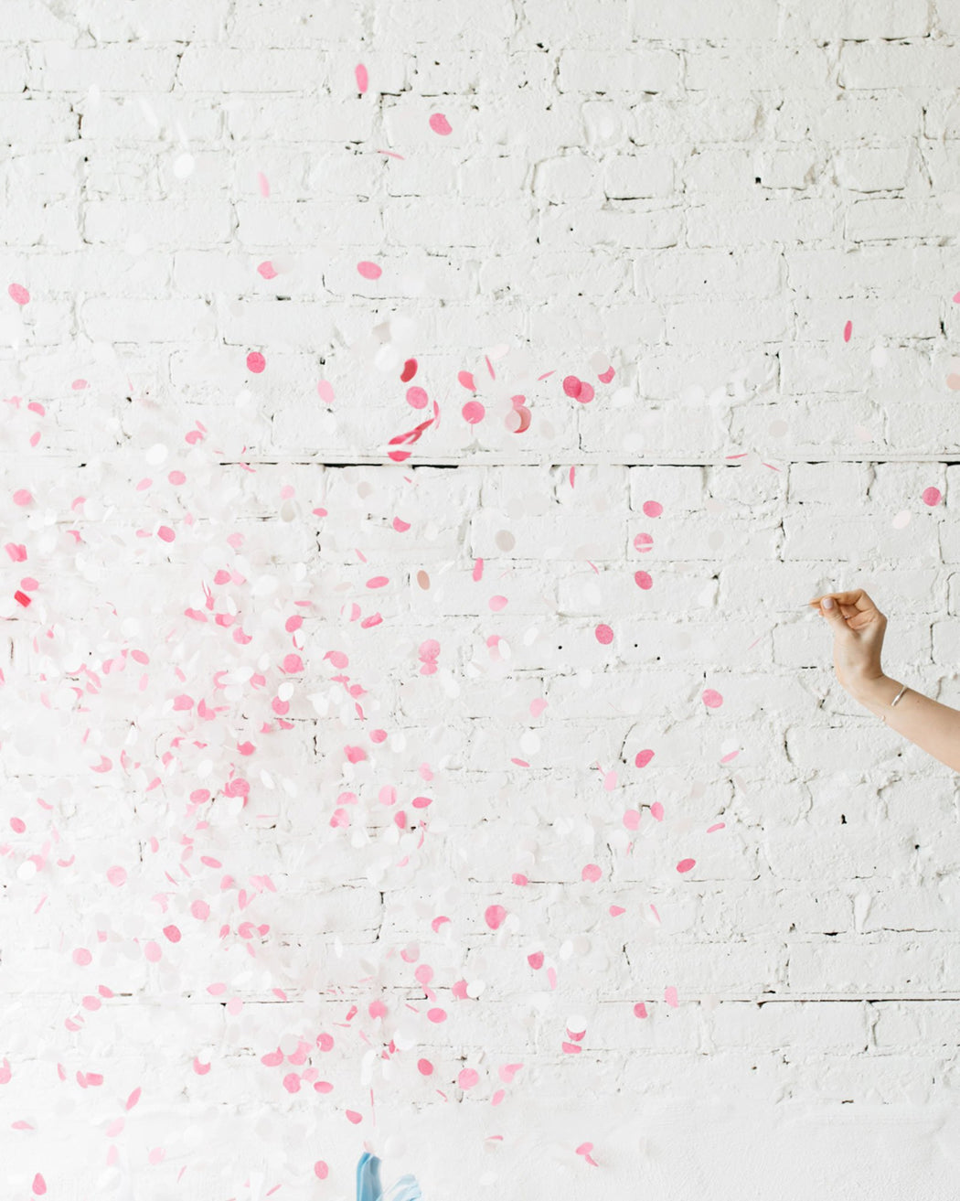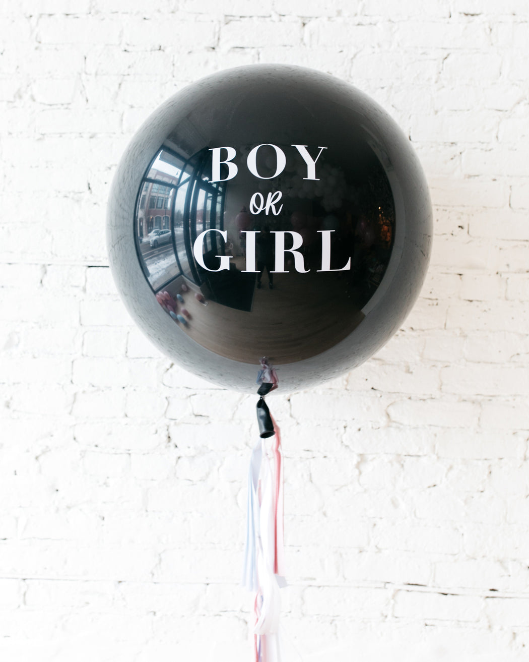 A poppin' giant that is sure to spread some cheer. Filled with colorful confetti, mini balloons, or both, this BOY OR GIRL balloon comes with a pin to pop and let the magic sprinkle around. Choice of blue or pink confetti. This product is Ready-To-Party™. Comes inflated, on a weight and dressed with tassel. Simply unbag and enjoy!