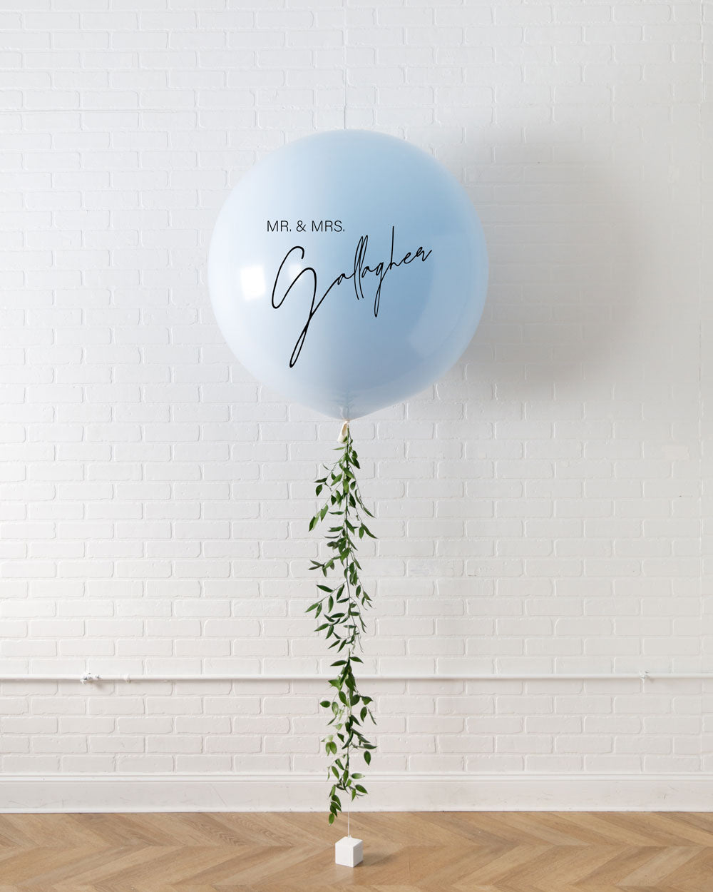 Our giant balloon finished with fresh greenery tassel for an effortless and whimsical look.