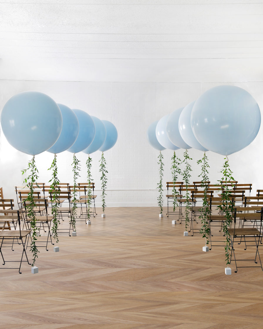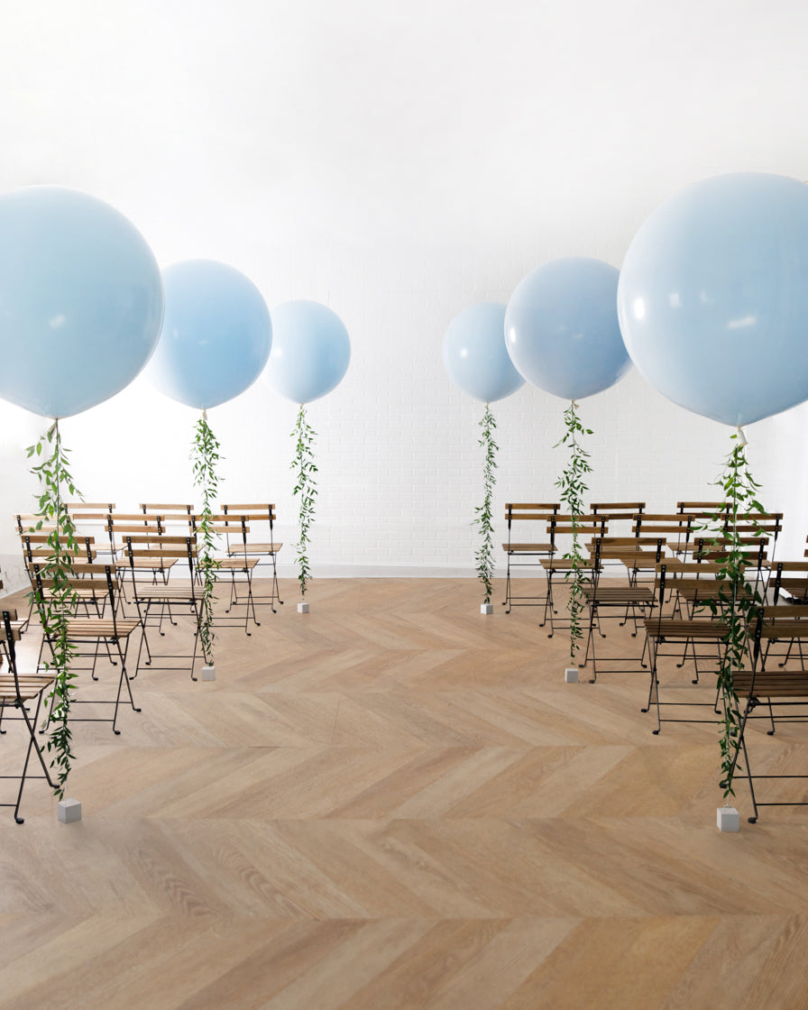 This set of giant balloons finished with fresh greenery tassel can line your wedding aisle and transform your space. Choose between 2, 6 or 10 giants to fit your ceremony needs best.
