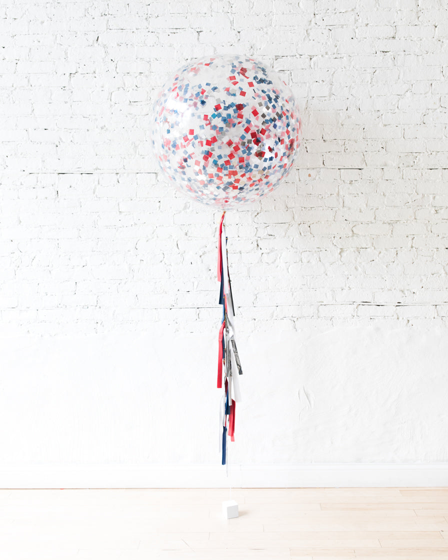 Red, White & Blue Confetti Giant Balloon and Tassel