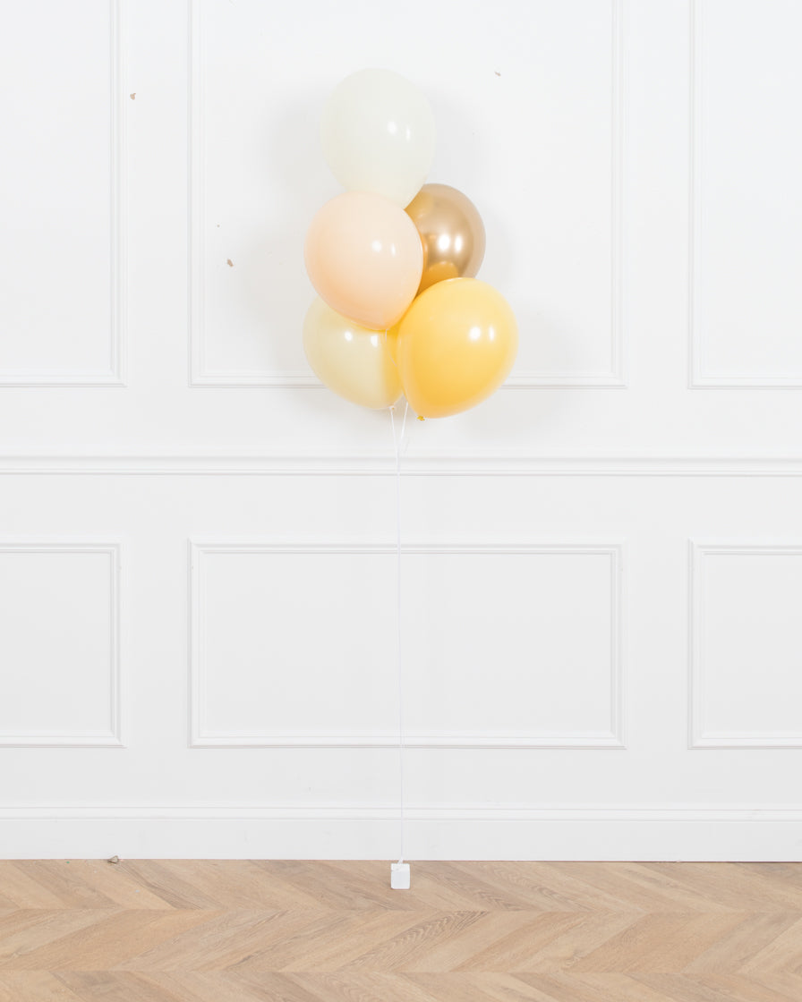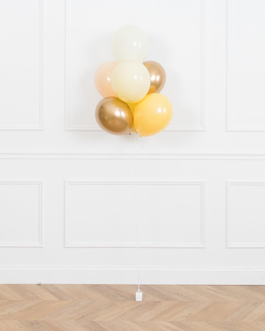 Create an adorable and sweet birthday with a classic balloon bouquet. This helium-filled balloon includes pastel yellow and gold balloons for a bee themed kids bash!