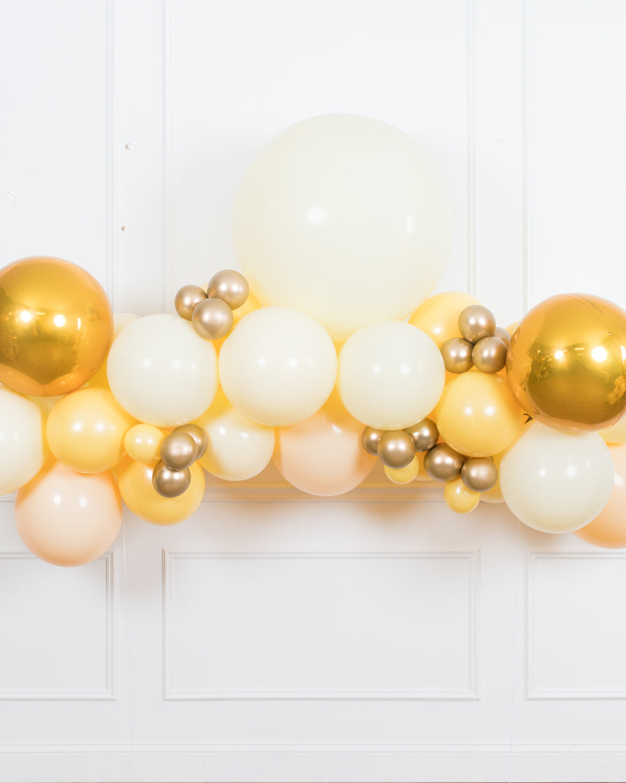 Make a statement with our bumblebee inspired 5ft floating balloon garland. This helium-filled garland includes bright pastel yellow colors, perfect for a bee themed shower.